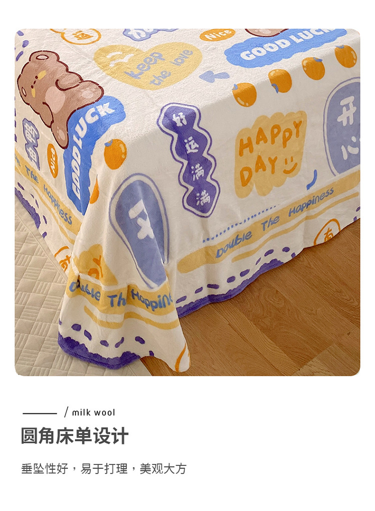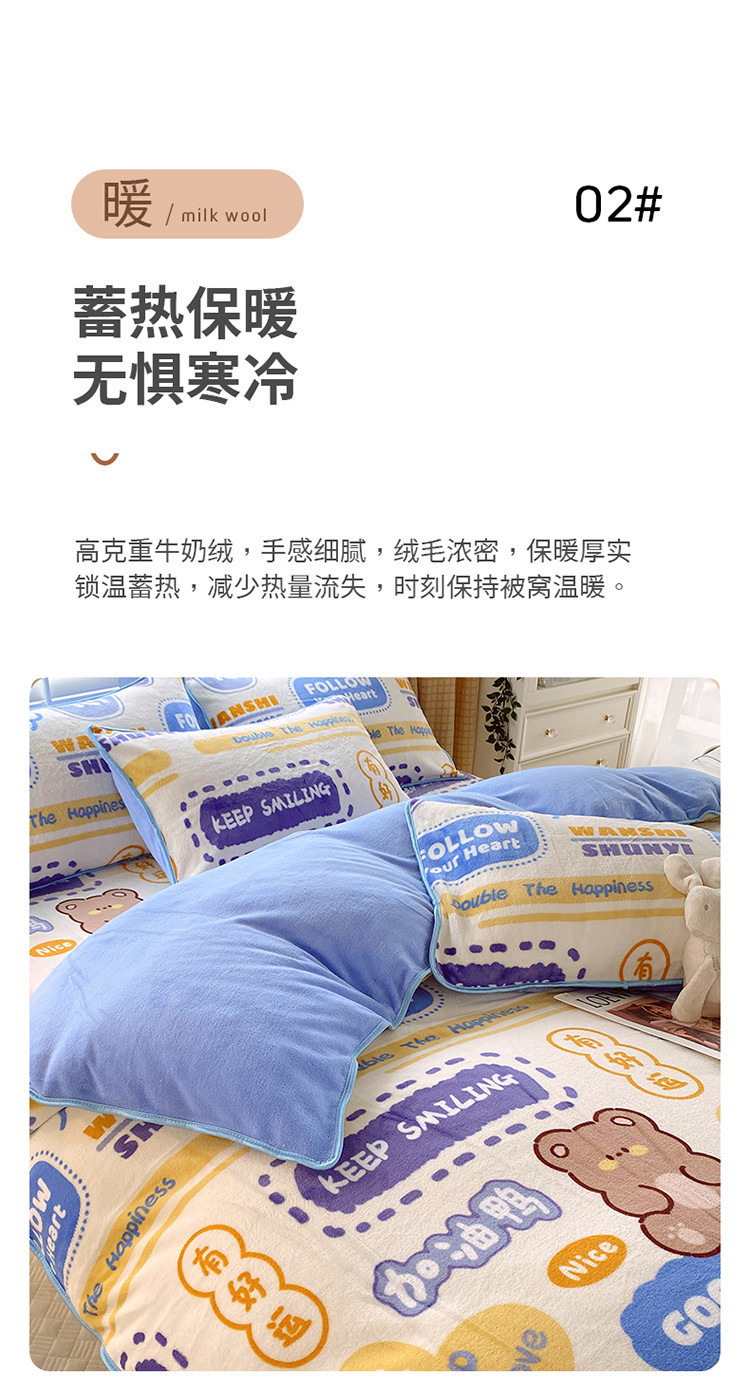 金鑫汇 2022新款牛奶绒四件套系列-单床笠 绅士熊-兰