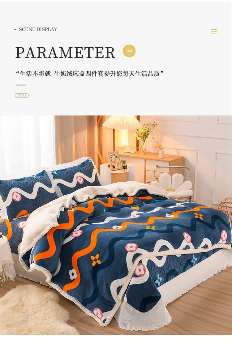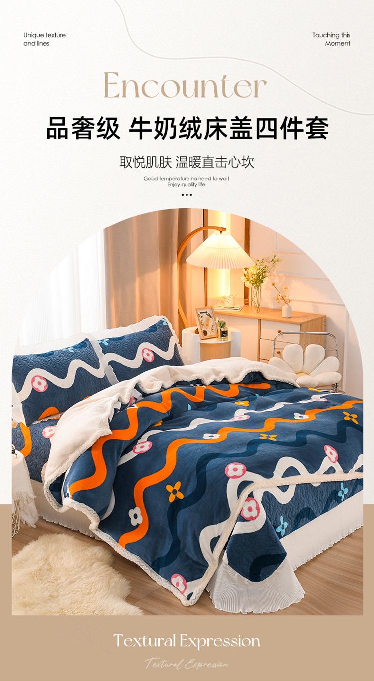 商品名称:迷仙巢 2022新款牛奶绒床盖款四件套 心动