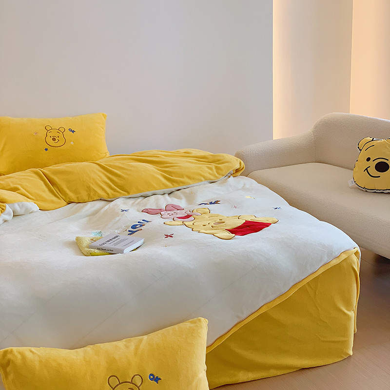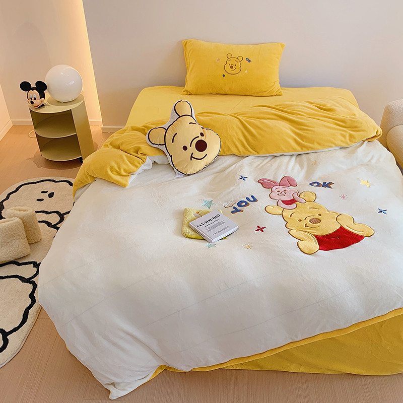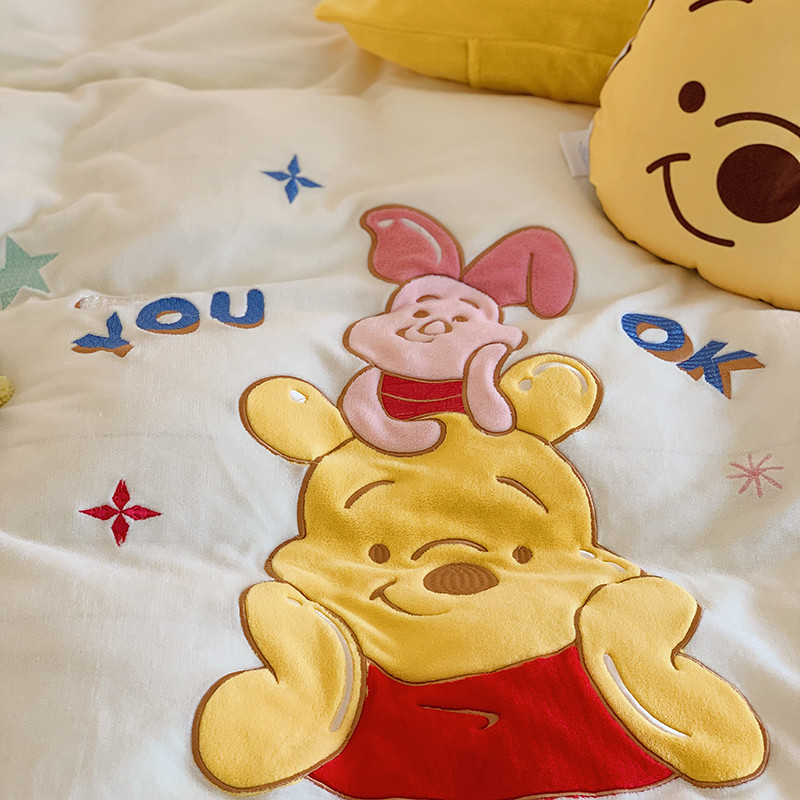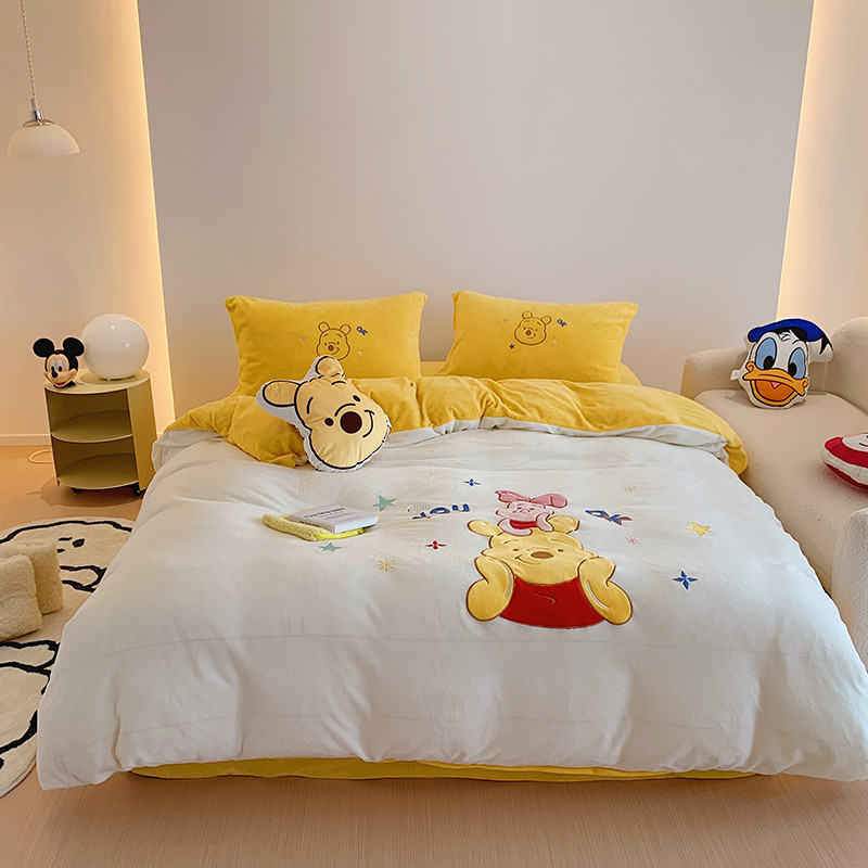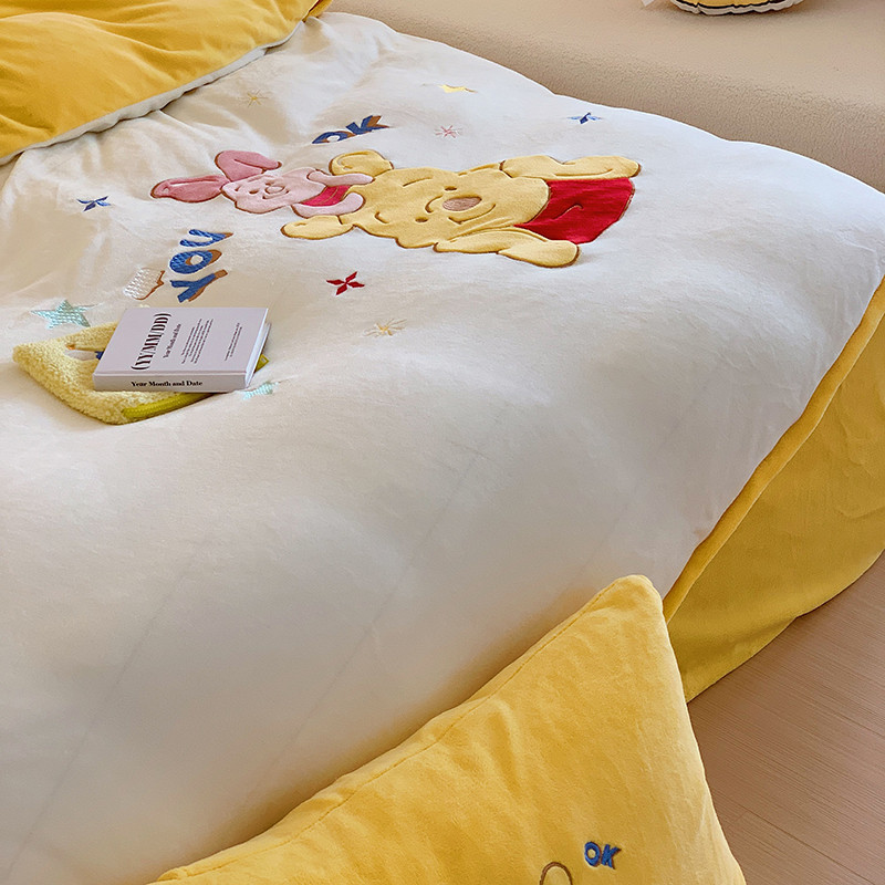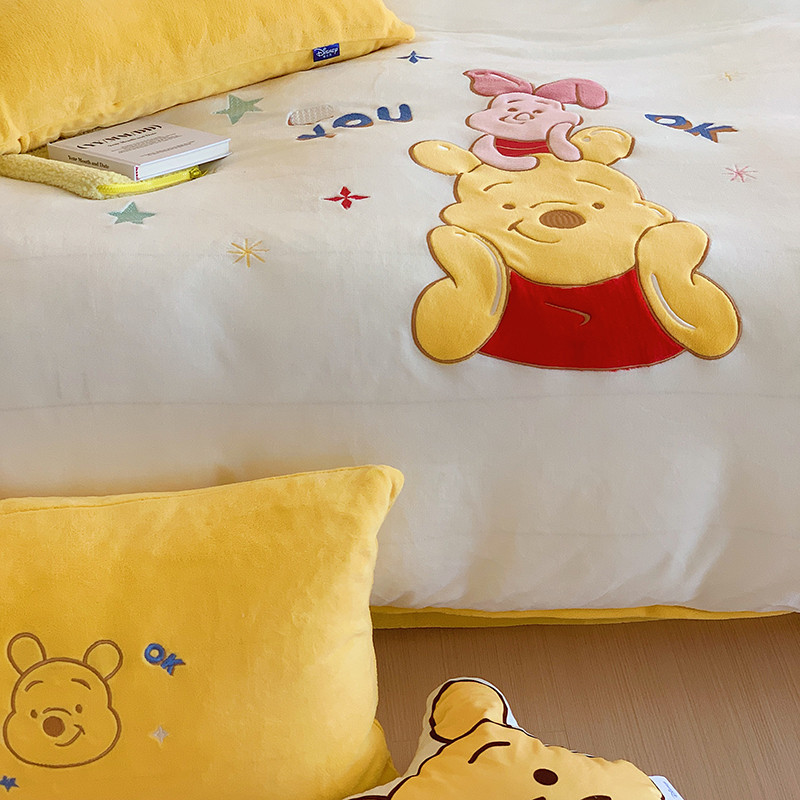 星期八 2022新款230g双面牛奶绒迪士尼刺绣四件套 维尼熊
