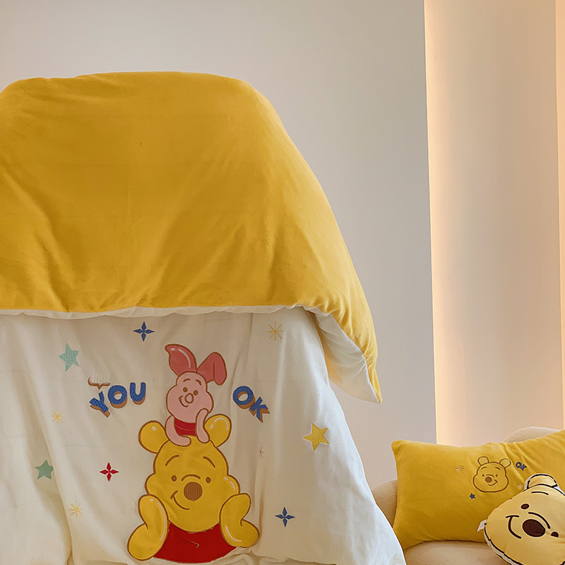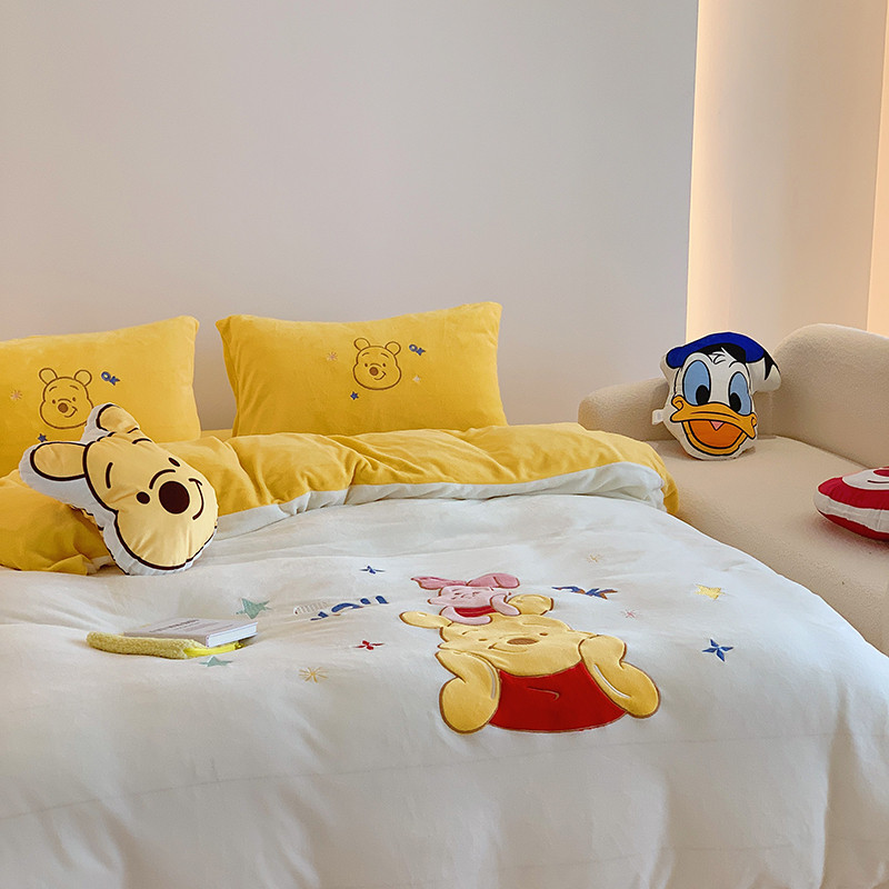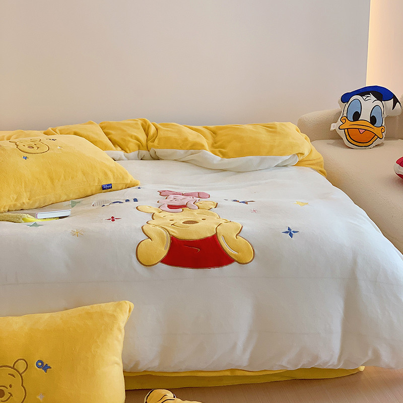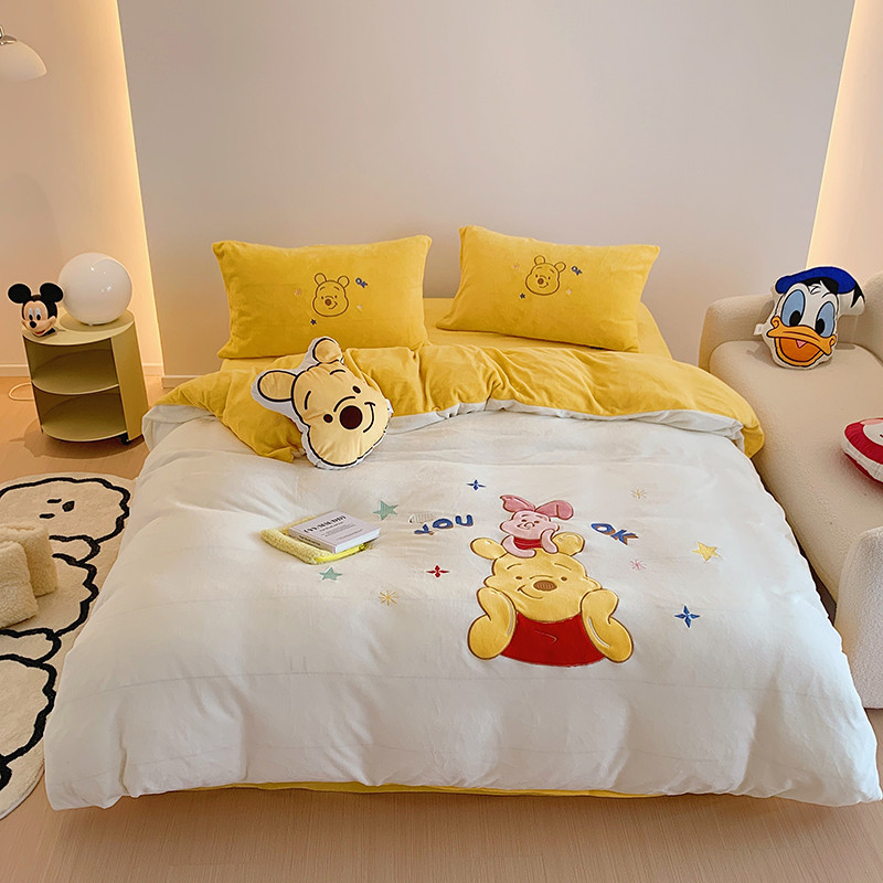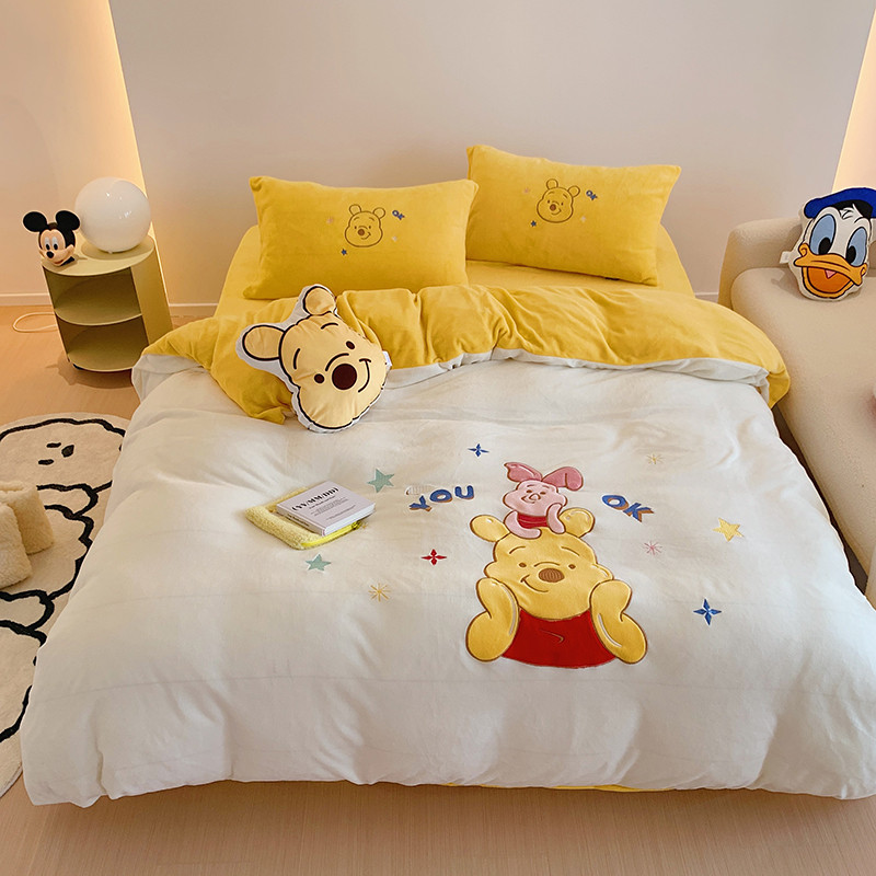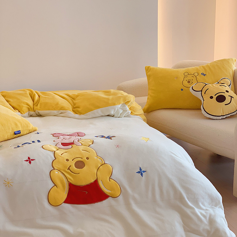 星期八 2022新款230g双面牛奶绒迪士尼刺绣四件套 维尼熊