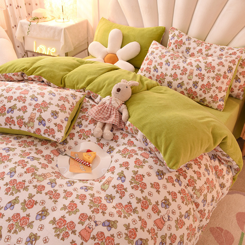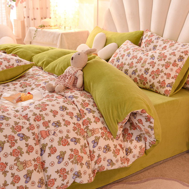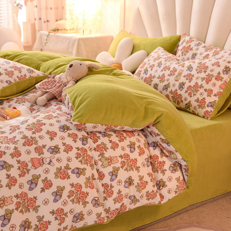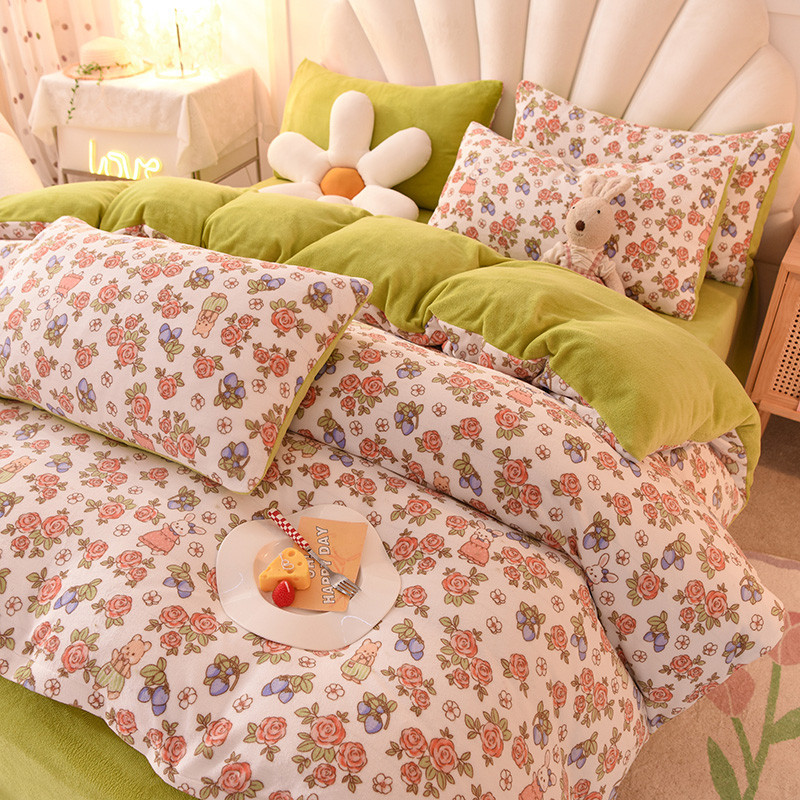 秋艳家纺 2023新款双面牛奶绒印花款四件套 绒-玫瑰情缘