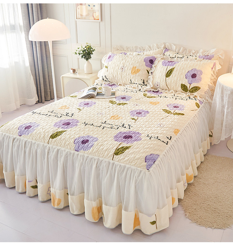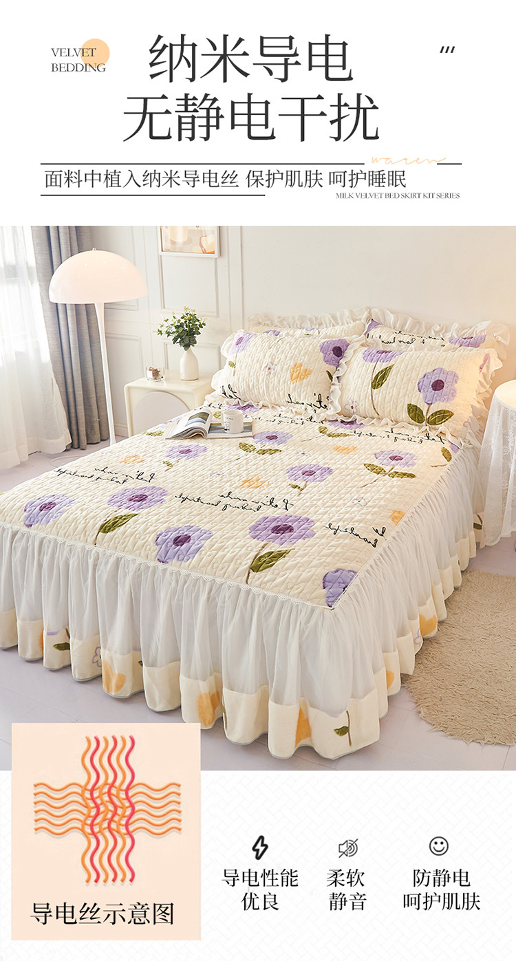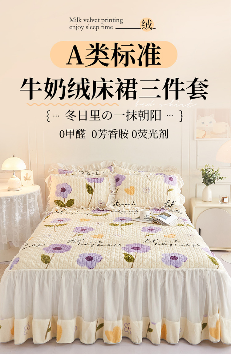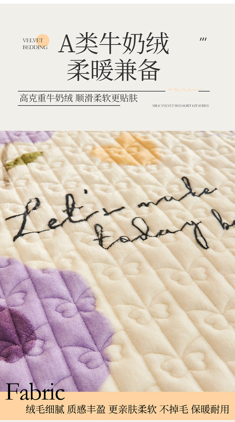 • 91家纺网 家纺一手货源 找家纺 宜凡 2022新款A类牛奶绒印花床裙三件套 连理花枝