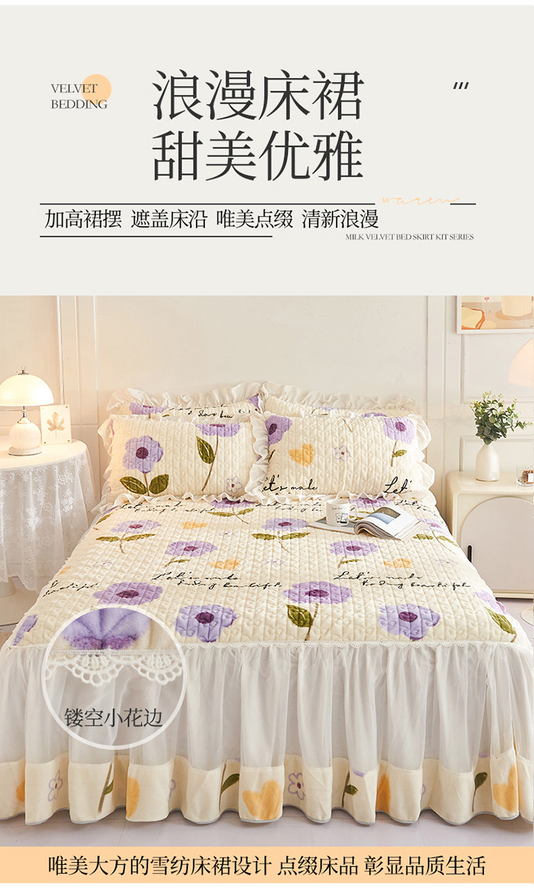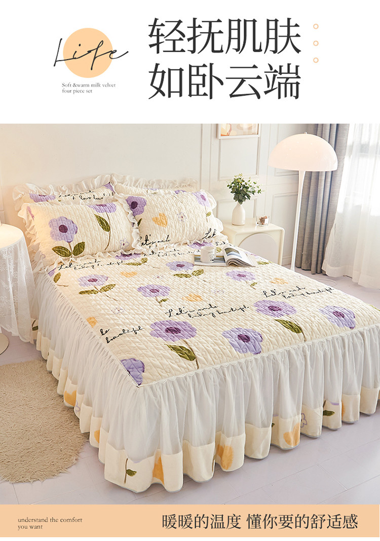 (总)宜凡家纺 2025新款兔绒提花牛奶绒夹棉床裙四件套,爱心 少女粉,爱心 粉紫,爱心 驼色,蝶舞 大红,蝶舞 米色,蝶舞 浅紫,蝶舞 玉色,简爱 苍青,简爱 豆沙紫,简爱 玉色,樱桃 苍青,樱桃 豆沙紫,樱桃 奶油白