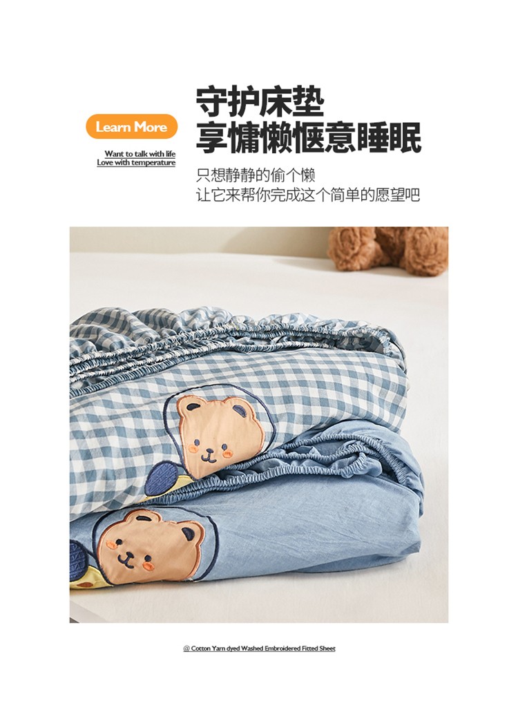 荷马之梦 2022新款全棉色织水洗棉绣花床笠-童梦系列星球熊