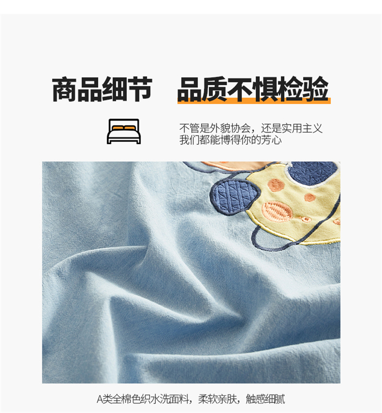商品名称:荷马之梦 2022新款全棉色织水洗棉绣花床笠-童梦系列星球熊