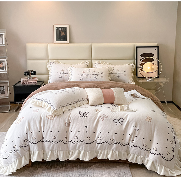 川悦生活 2022新款大阪花边轻奢牛奶绒四件套 欧莉