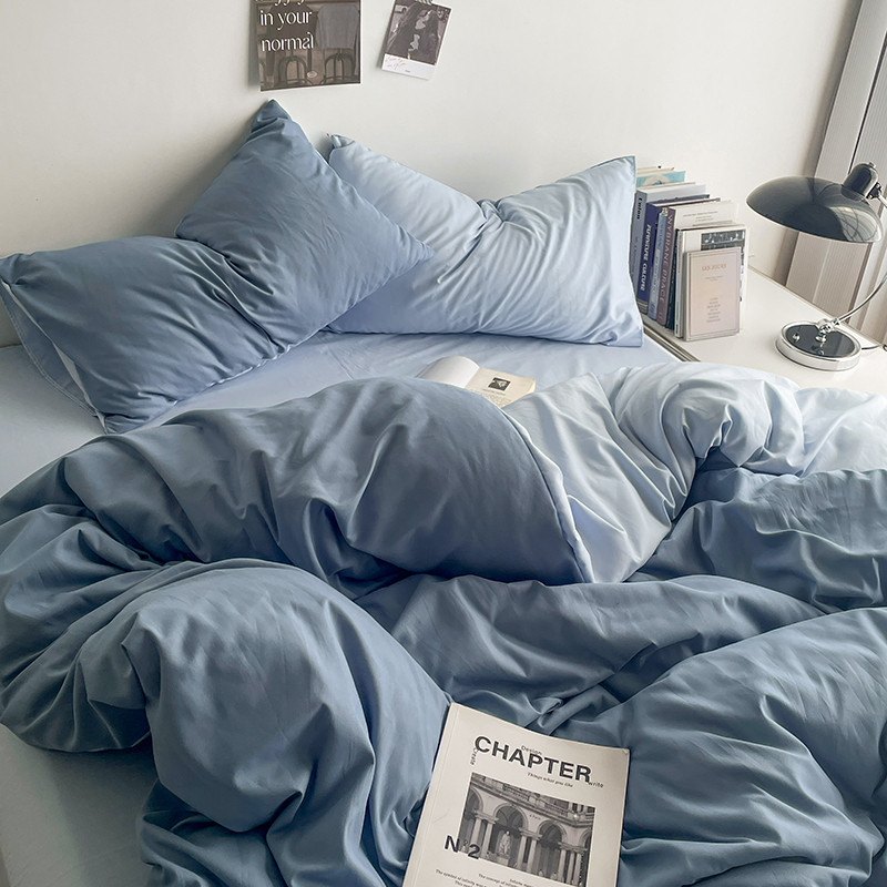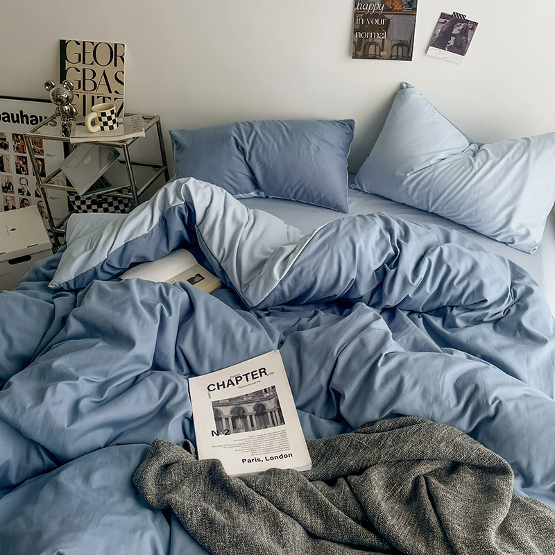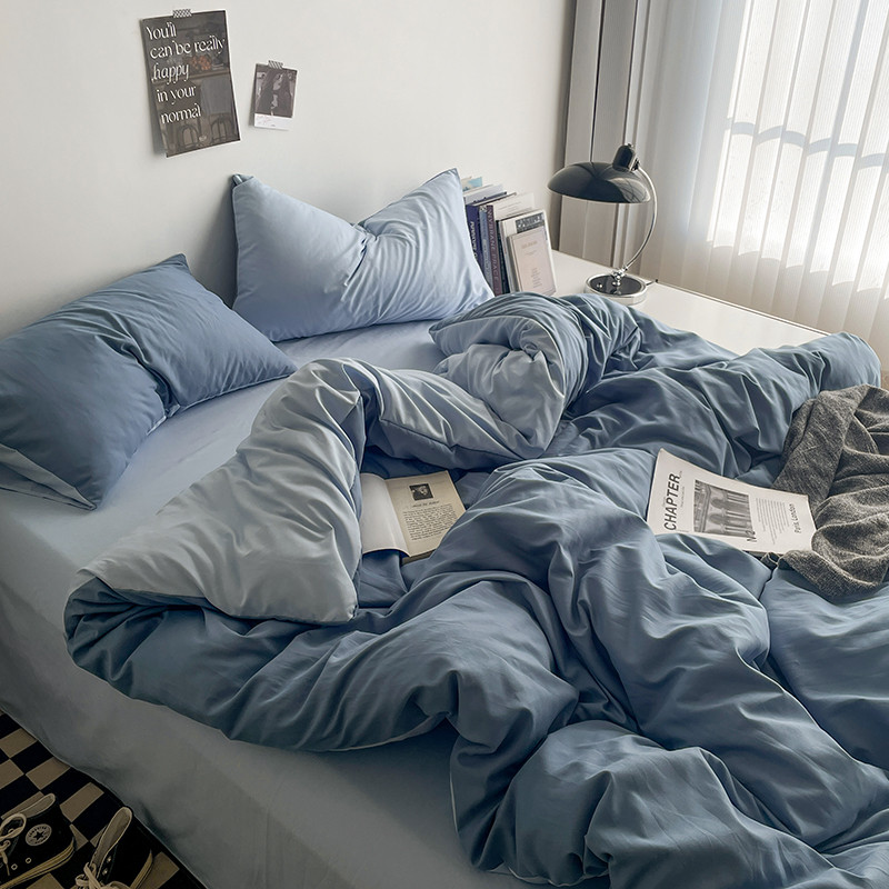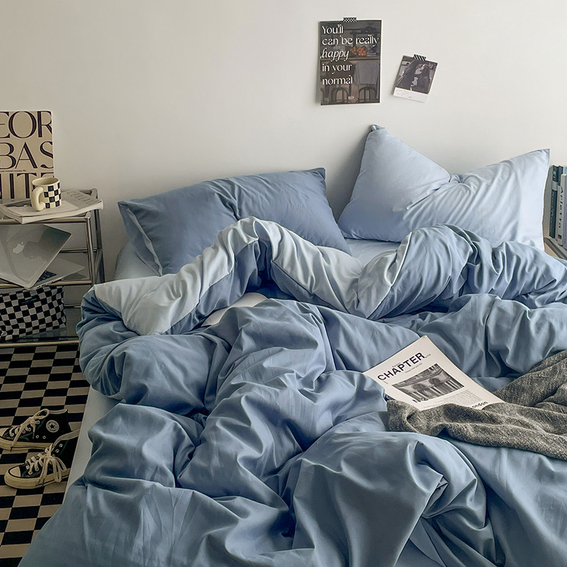 贝拉梦 2023亲肤棉北欧简约风纯色双拼105G单品被套 月光雾蓝