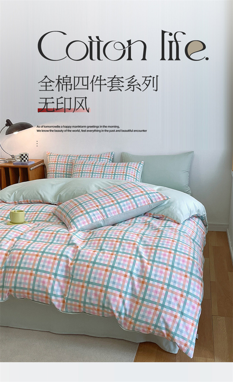 商品名称:798 2023新款全棉无印风系列单品被套 奶油格