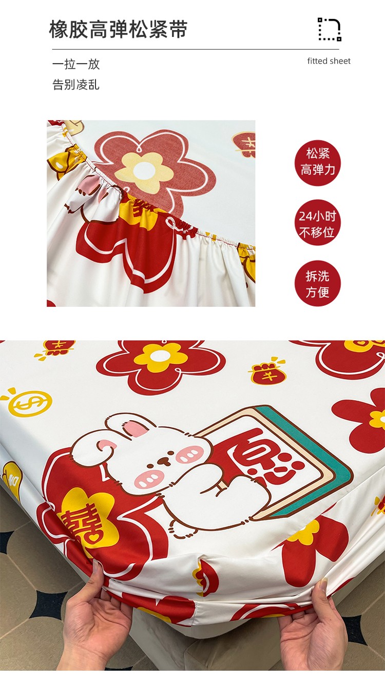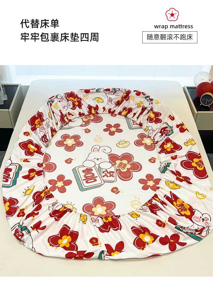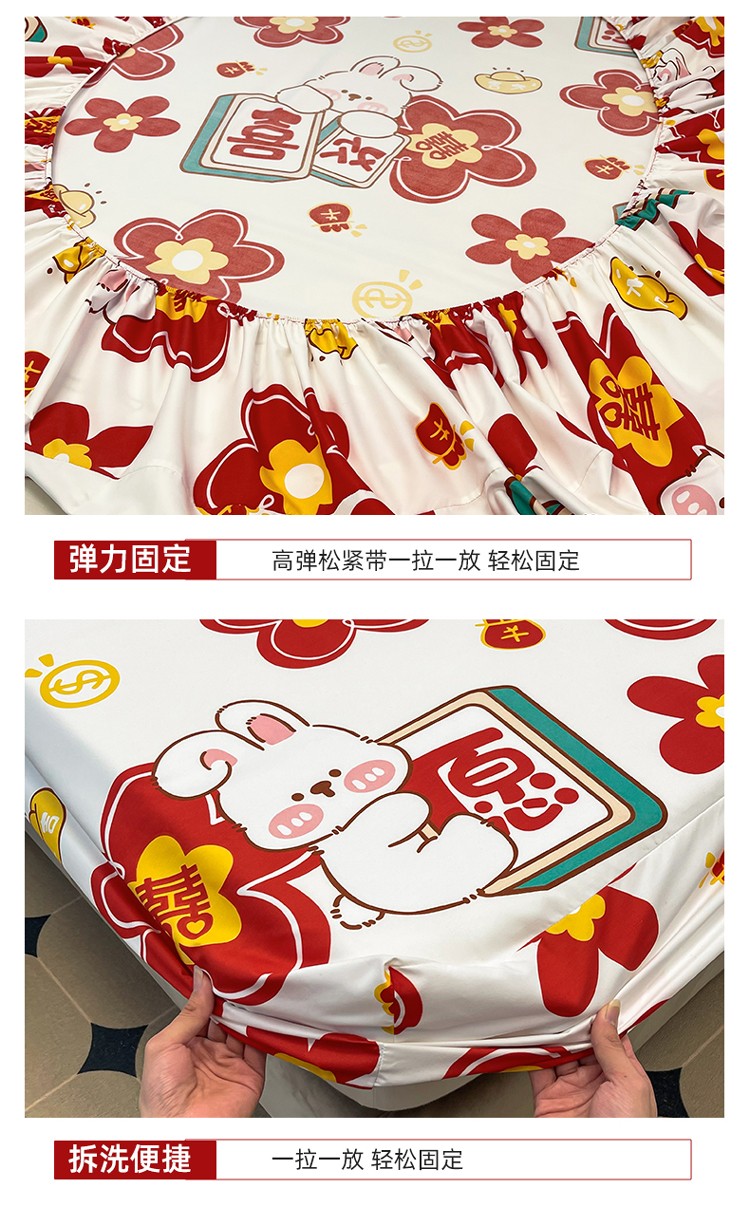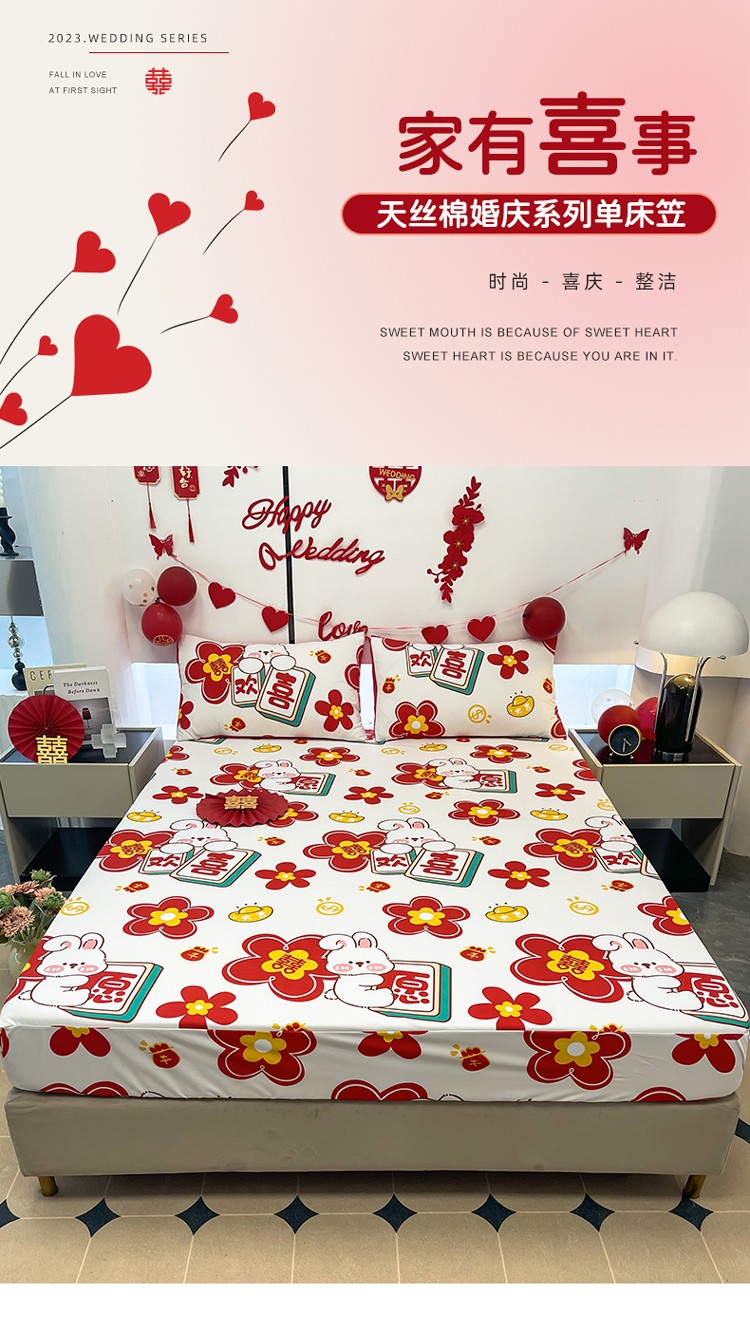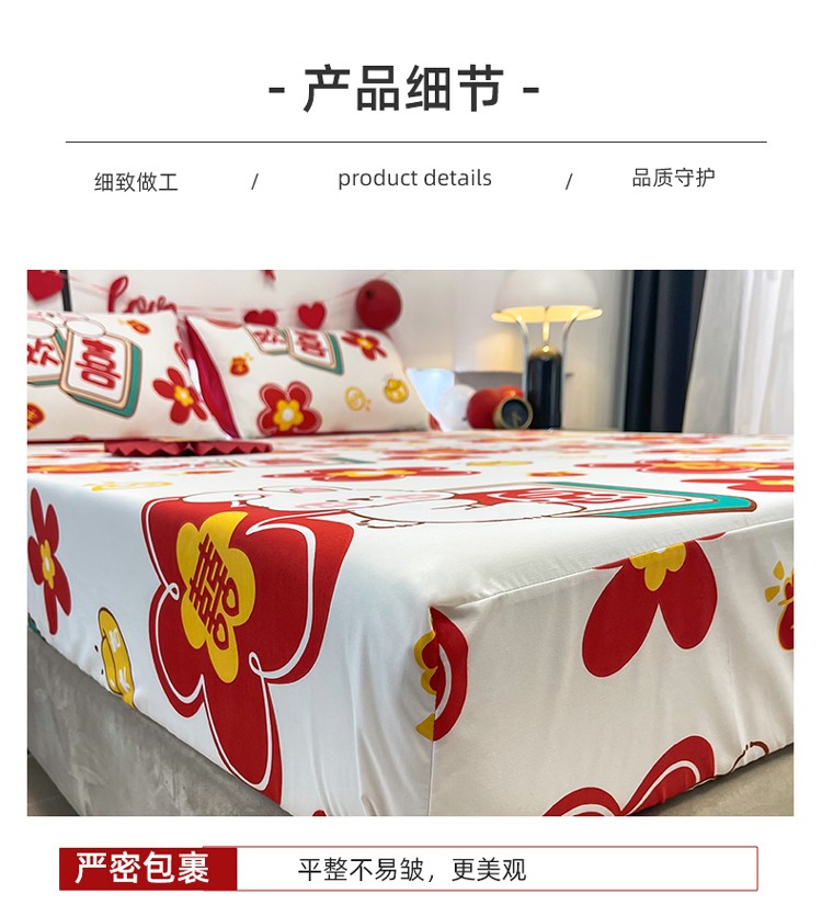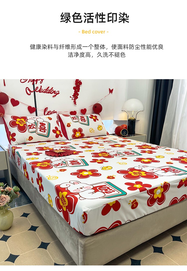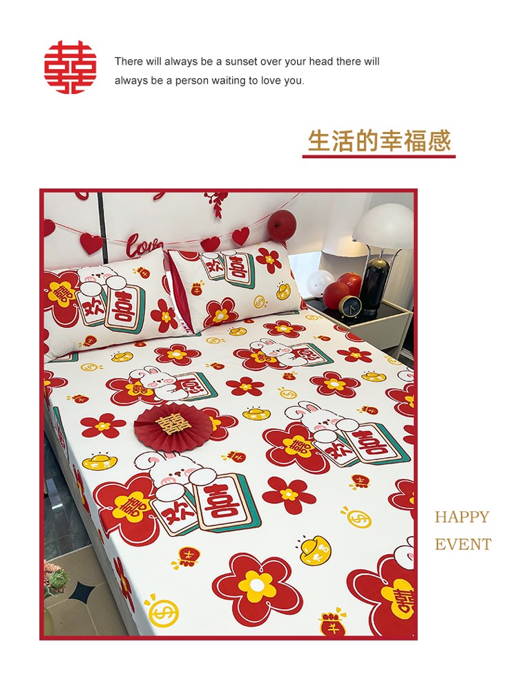 宏源 2023年新款大红时尚磨毛婚庆单床笠 欢天喜地
