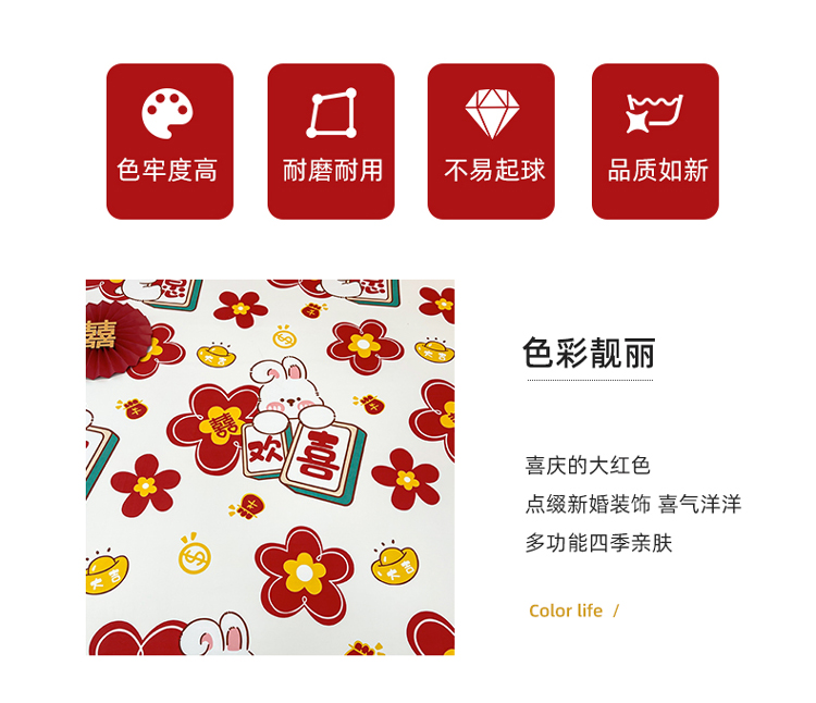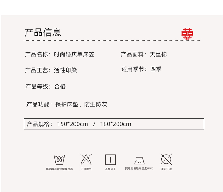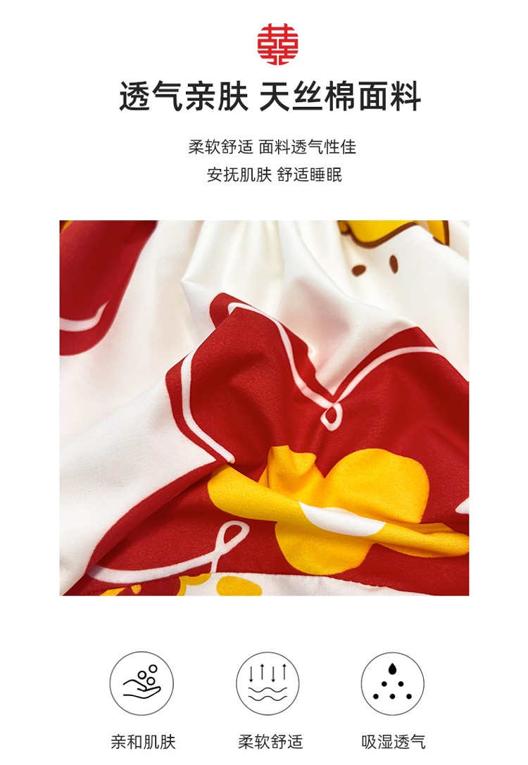 商品名称:宏源 2023年新款大红时尚磨毛婚庆单床笠 欢天喜地