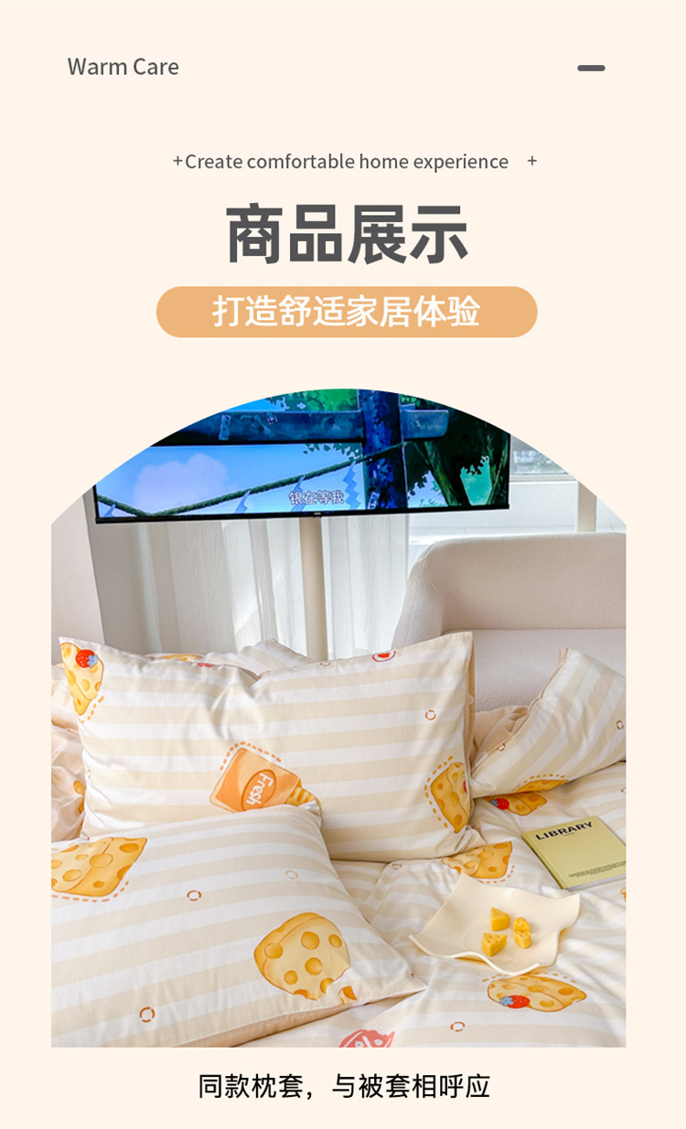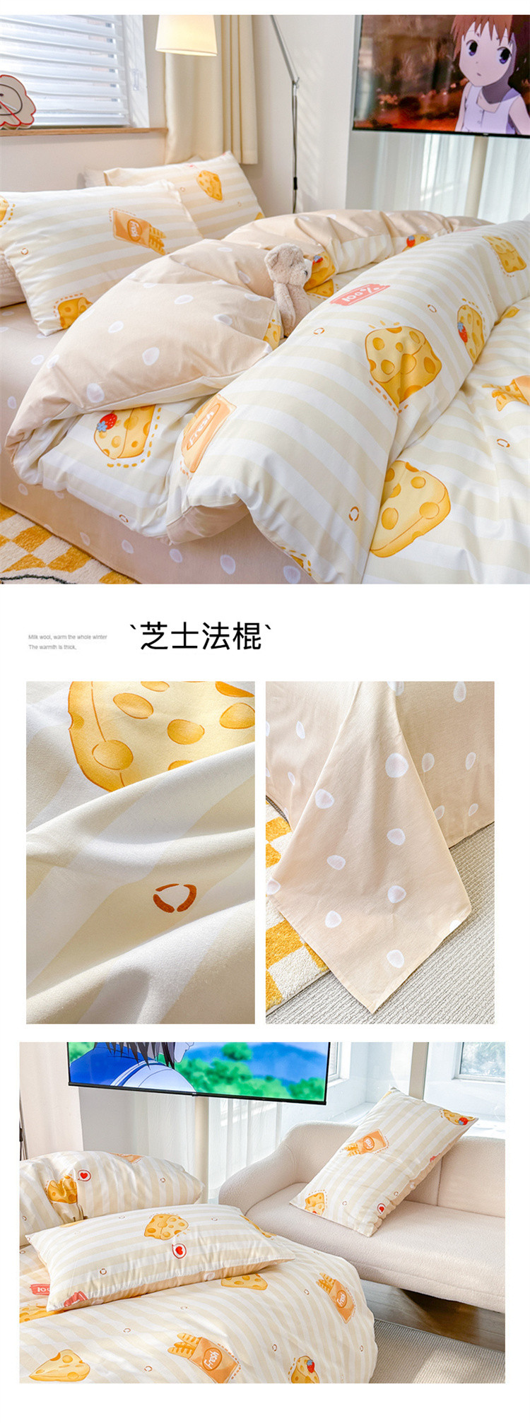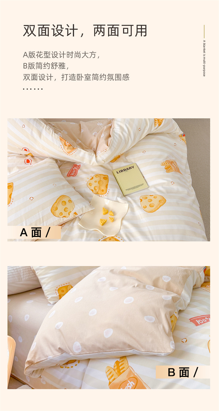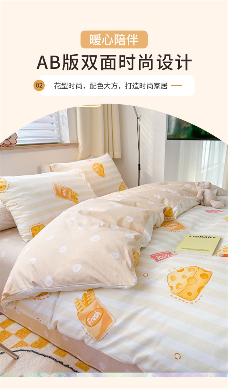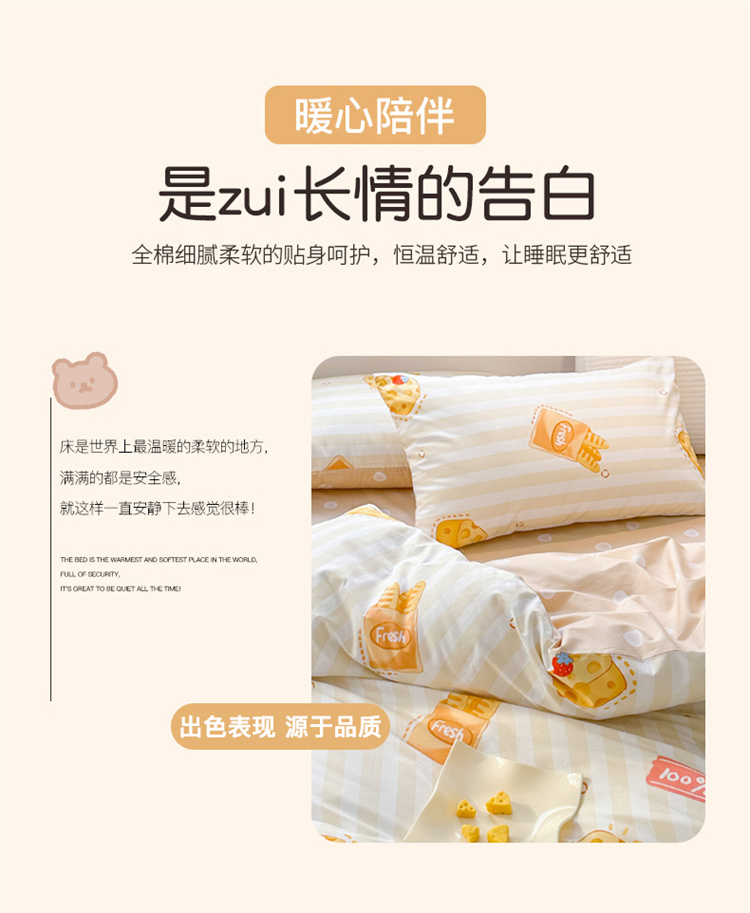 商品名称:优彩 2023新款13372全棉小清新卡通系列四件套 芝士法棍