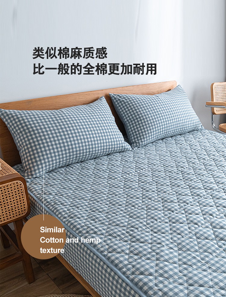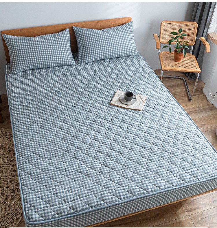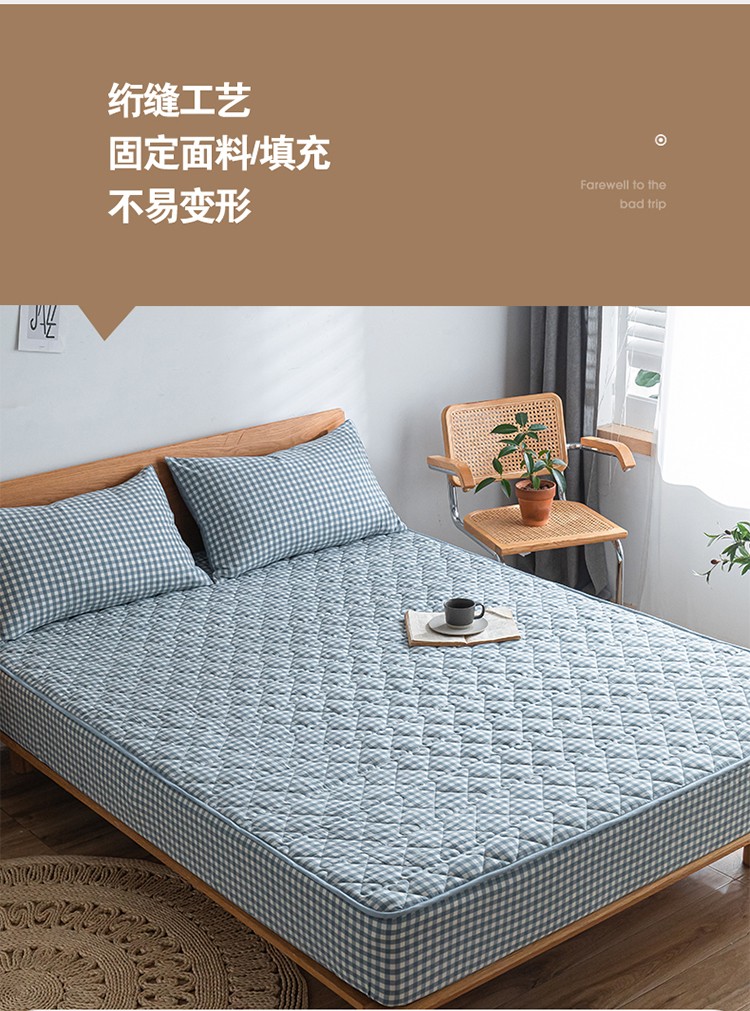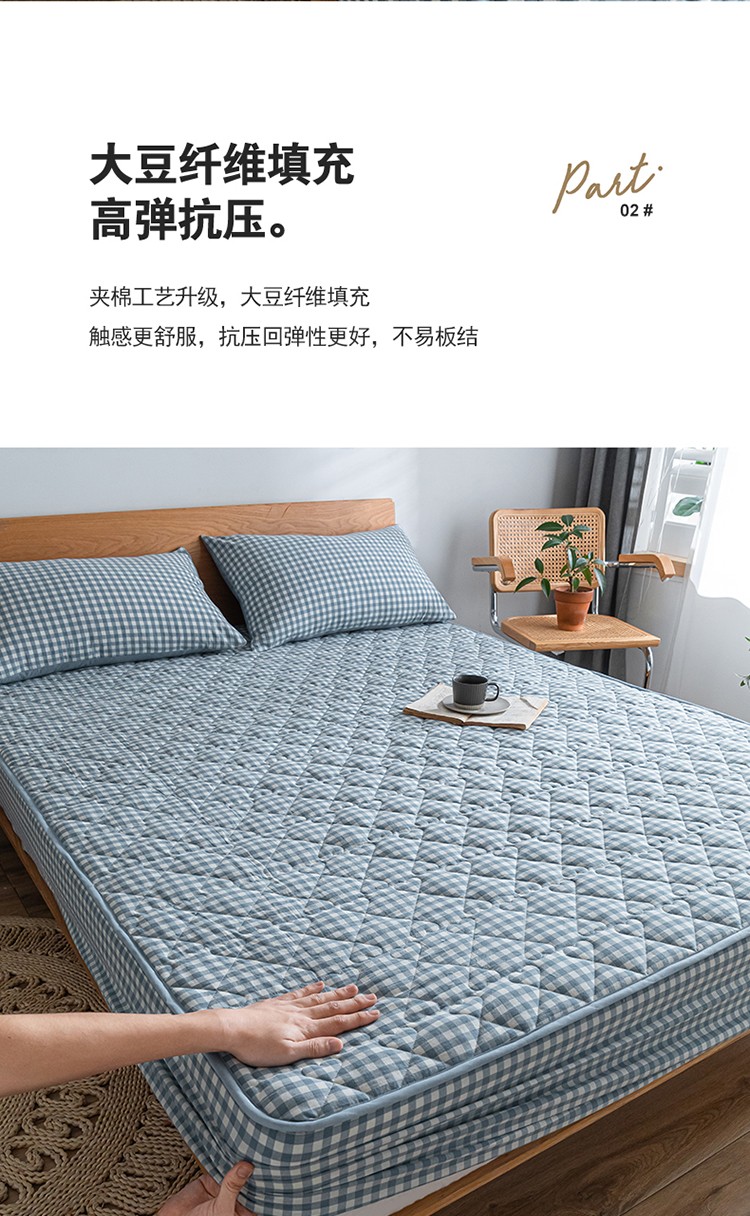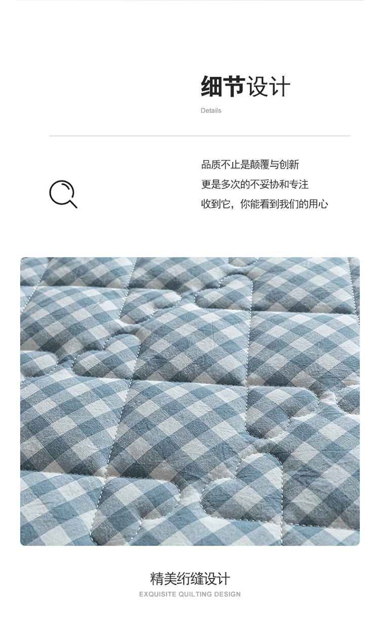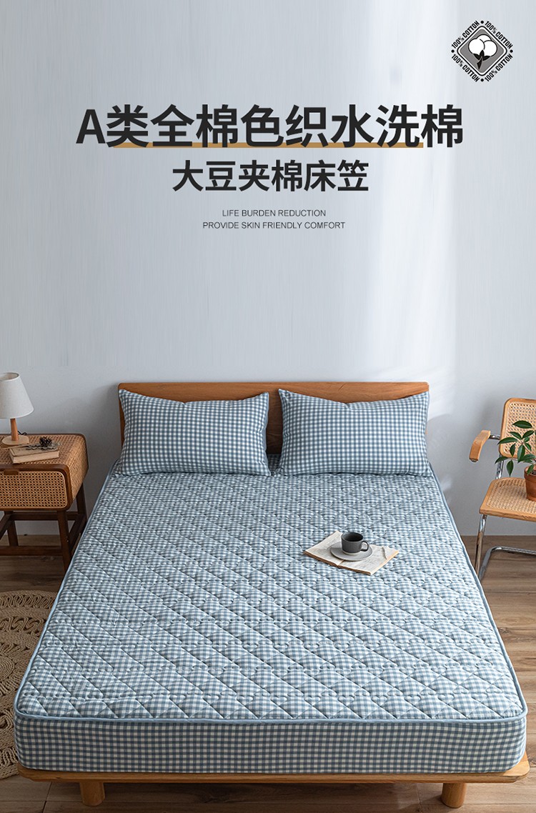 商品名称:蓝巢 2023新款全棉水洗棉大豆夹棉床笠 蓝小格