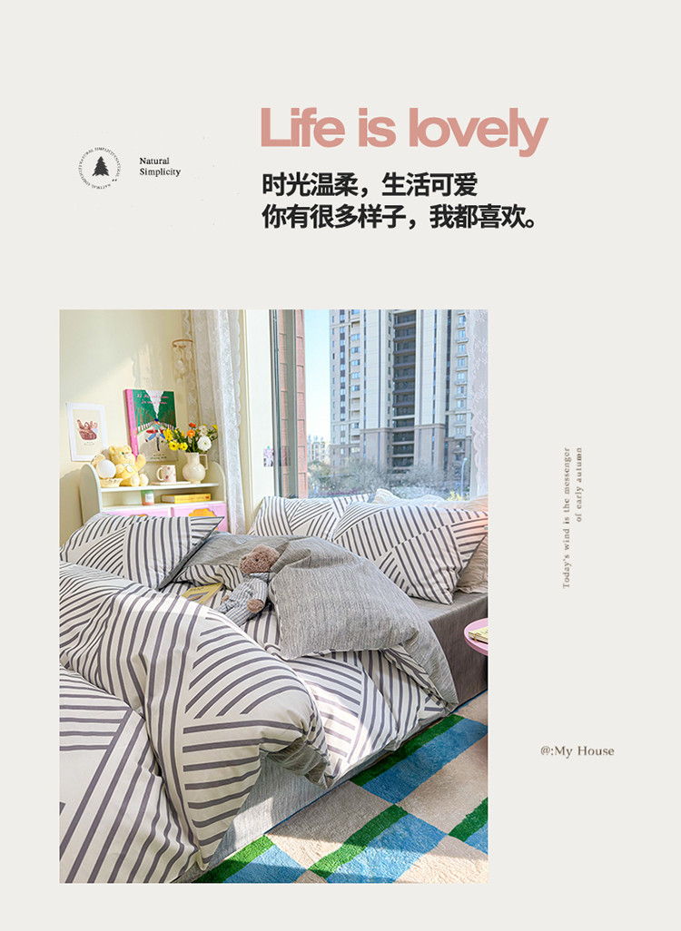 当前位置: 91家纺网 > 商品网购 > 床品套件 > 四件套 > 全棉普通四件套 > 名兮 2023新款极简风全棉印花四件套 极简-高级灰