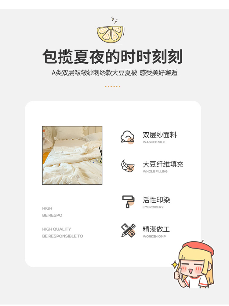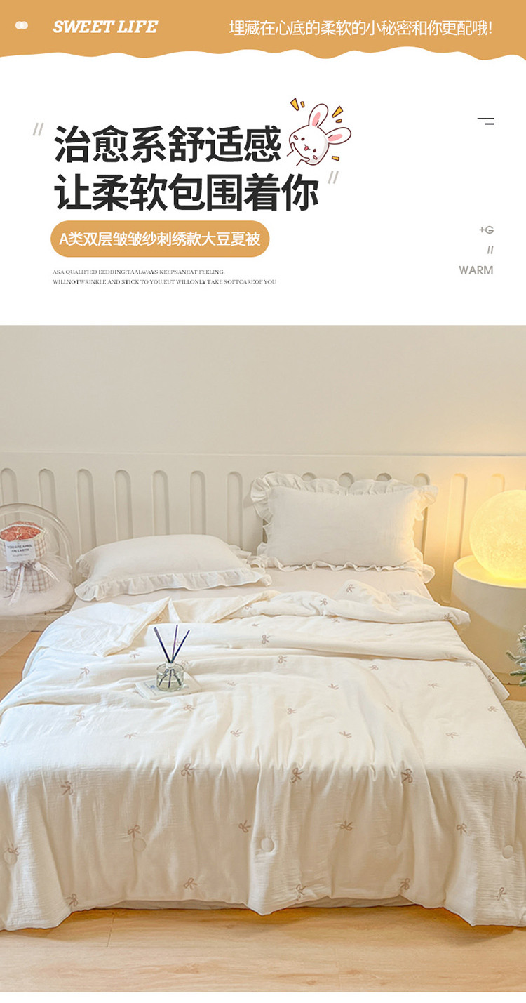 (总)木楌 2025年新款双层皱皱纱刺绣款夏被大豆被,蓓蕾,小飞象,蝴蝶结,领结兔,枇杷叶,三叶草,小樱桃,幸运熊