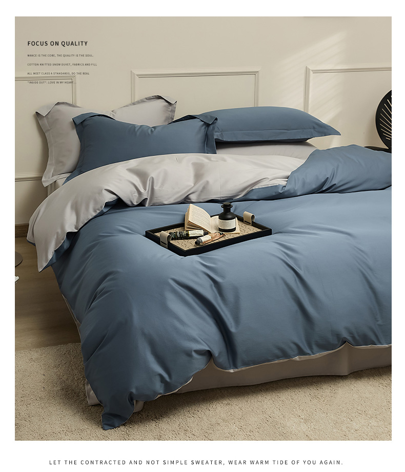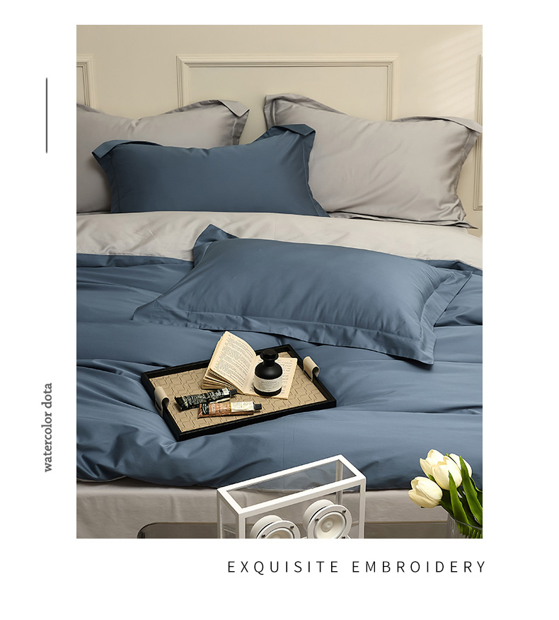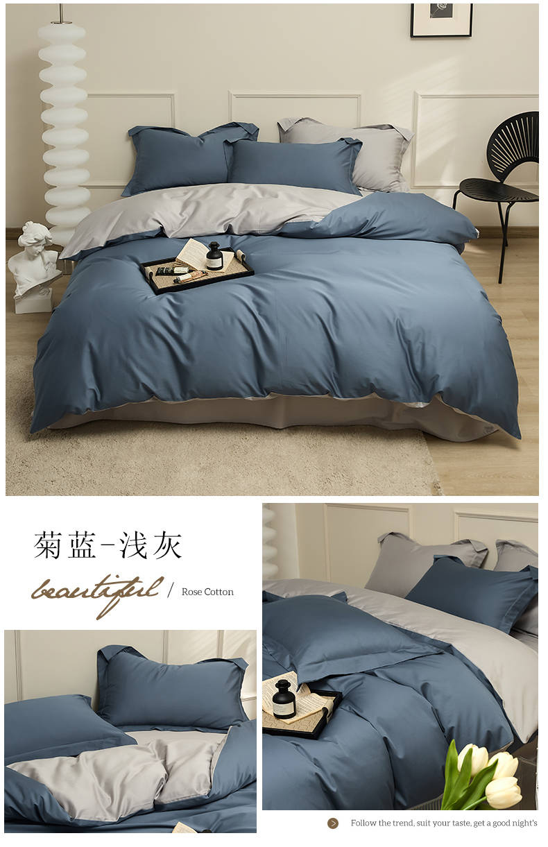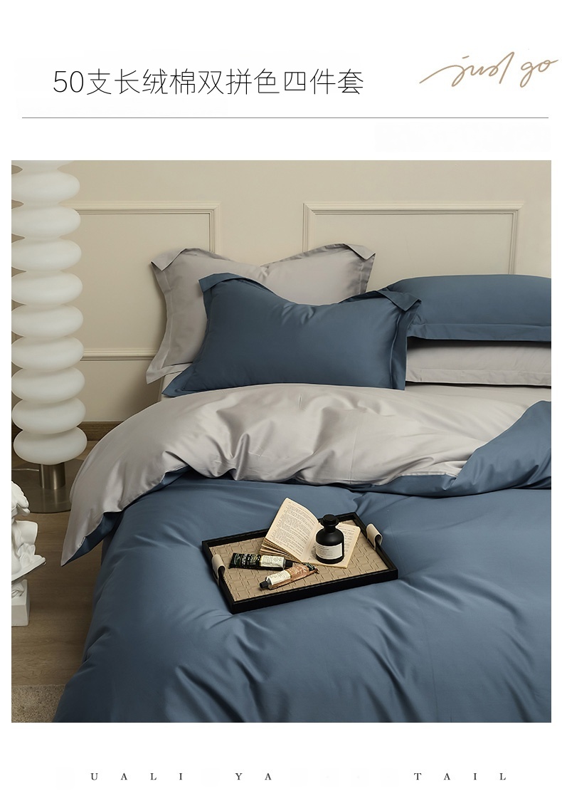 当前位置: 91家纺网 > 商品网购 > 床品套件 > 四件套 > 长绒棉四件套 > 新款100S长绒棉双拼四件套 菊蓝-浅灰