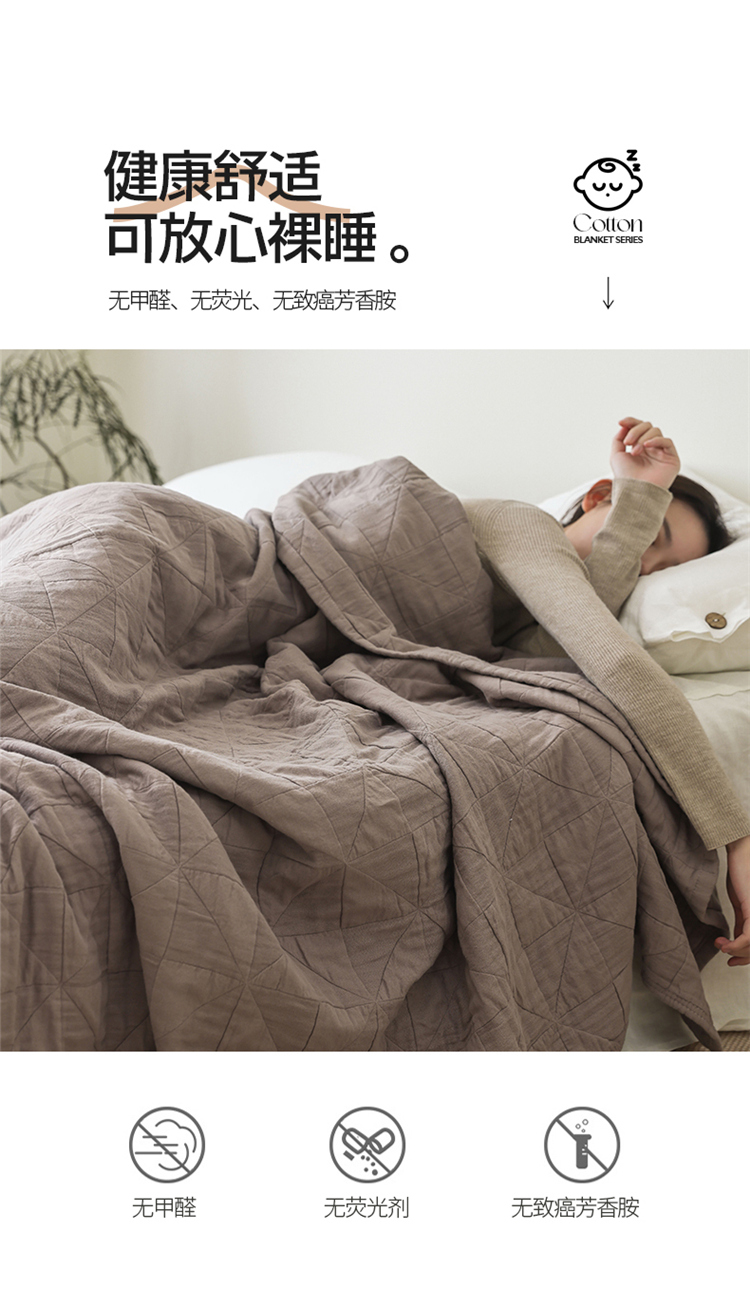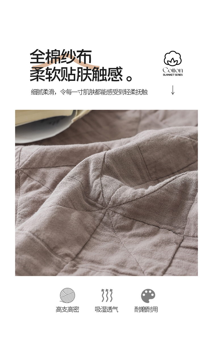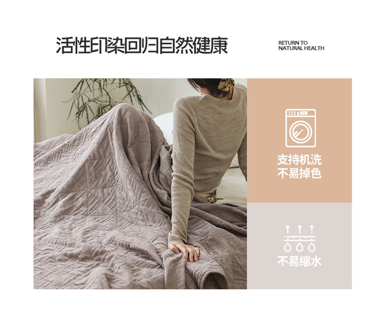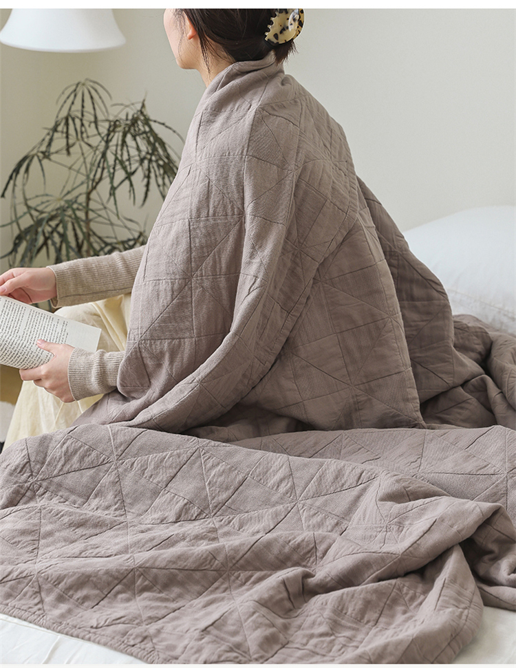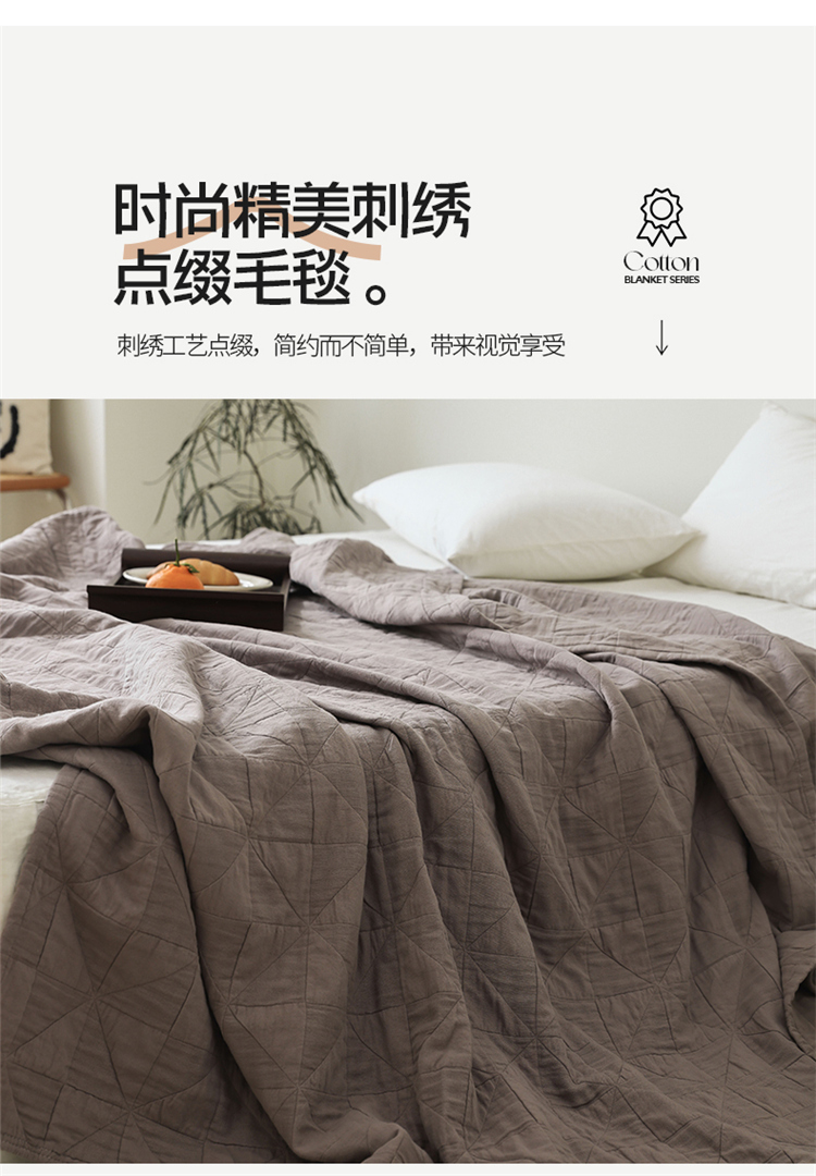 雯雨家纺 2023新款全棉拼色纱布毛巾被 新风车-灰