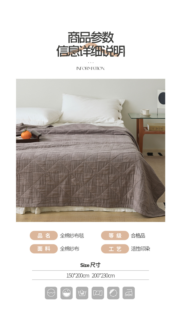 商品名称:雯雨家纺 2023新款全棉拼色纱布毛巾被 新风车-灰