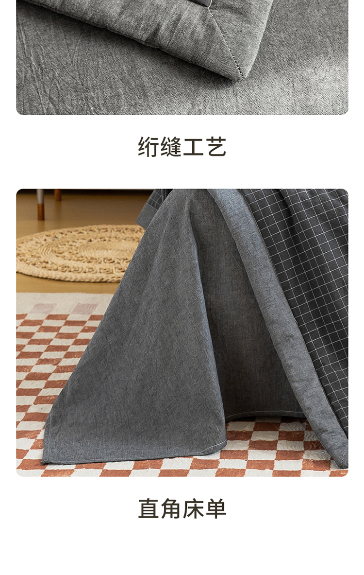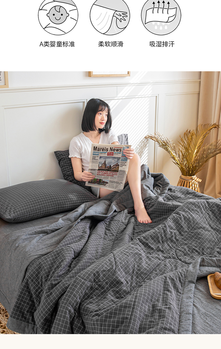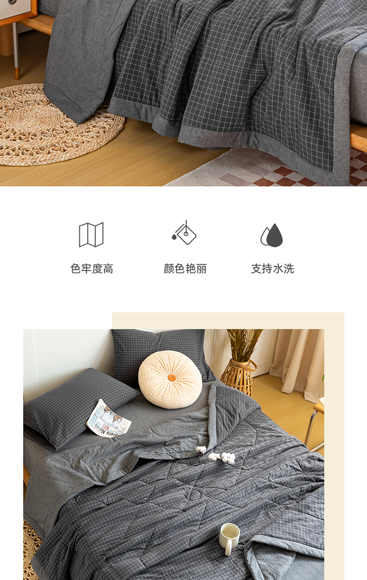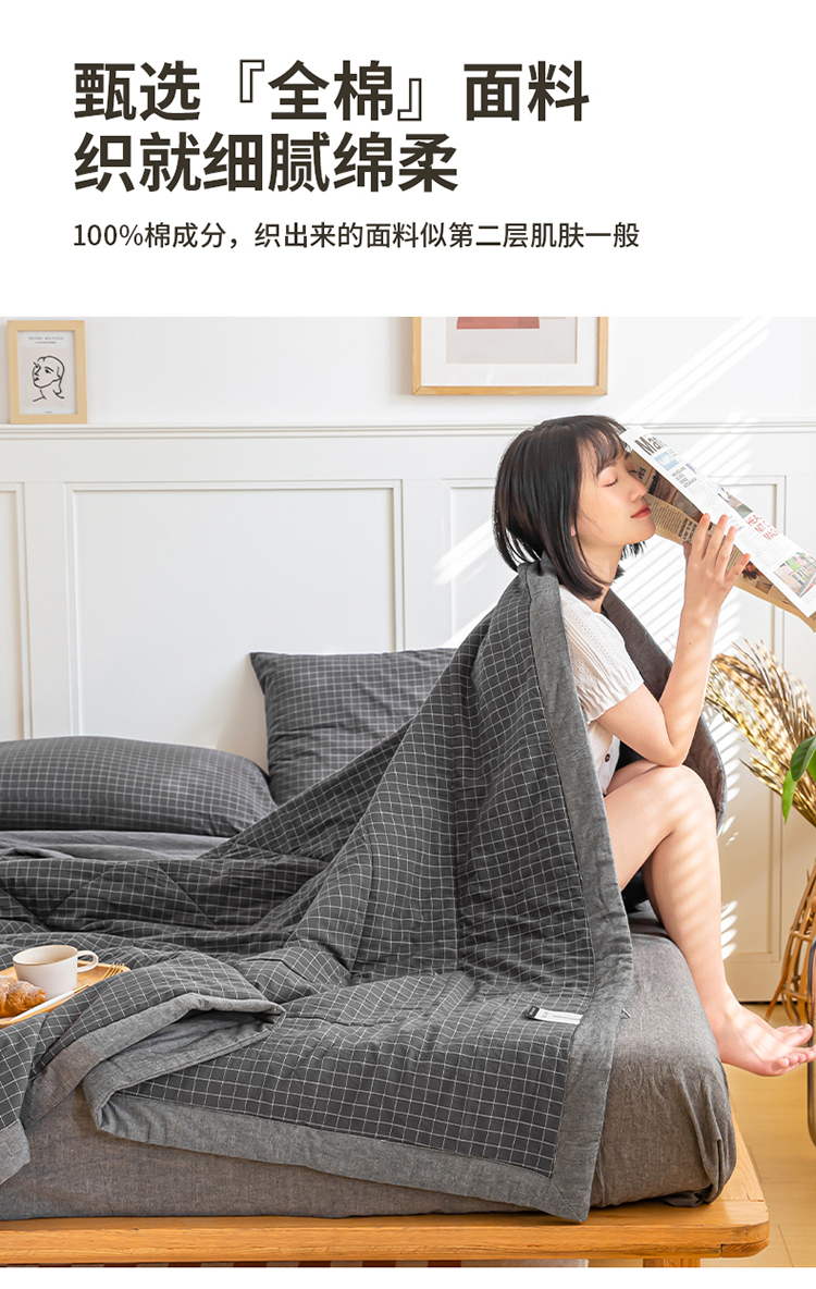 • 91家纺网 家纺一手货源 找家纺 鸣升新疆长绒棉全棉花色织水洗棉夏被四件套 新灰格