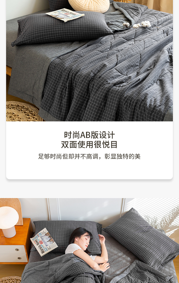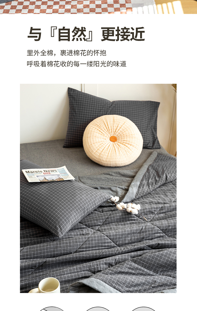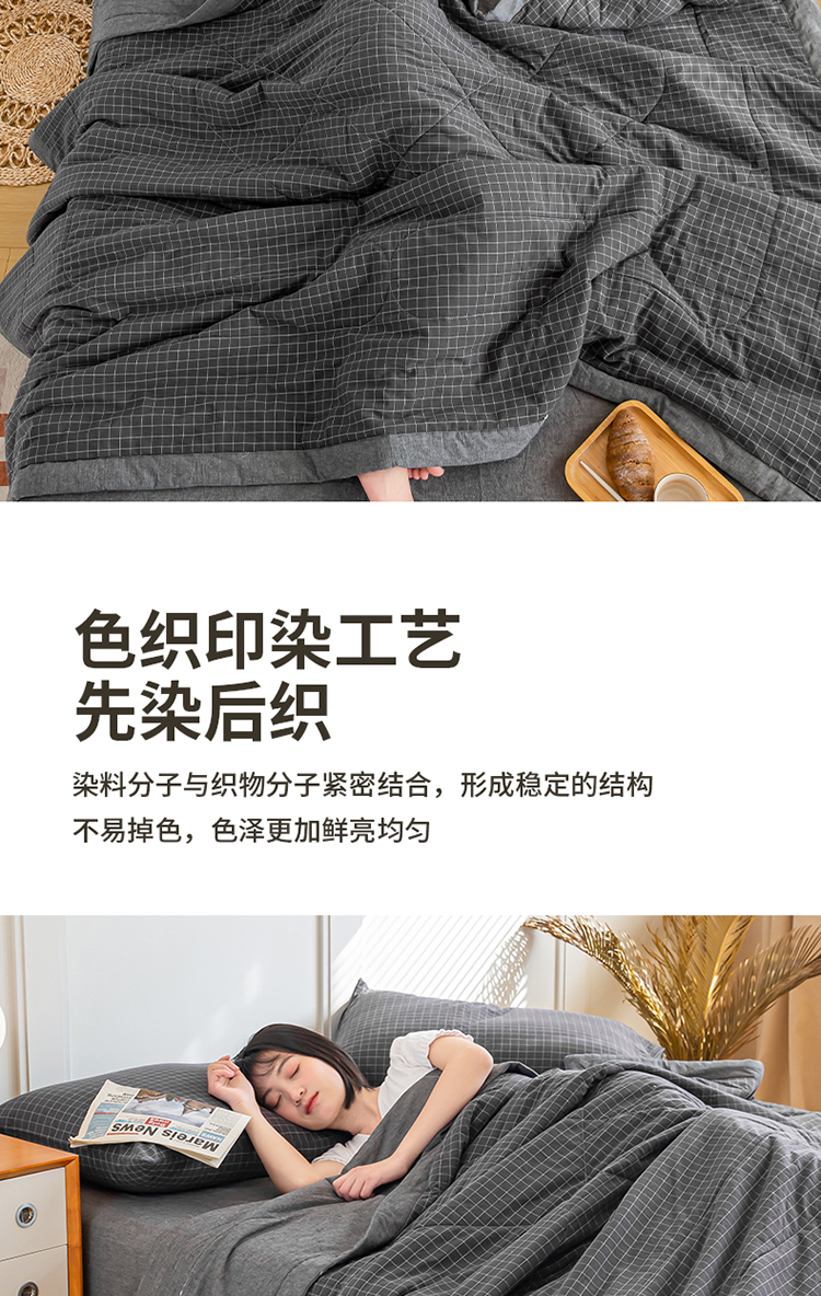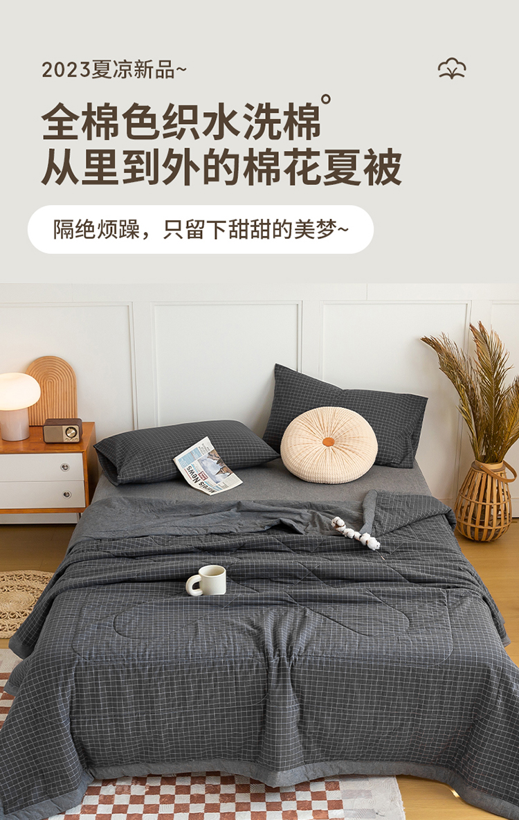 • 91家纺网 家纺一手货源 找家纺 鸣升新疆长绒棉全棉花色织水洗棉夏被四件套 新灰格