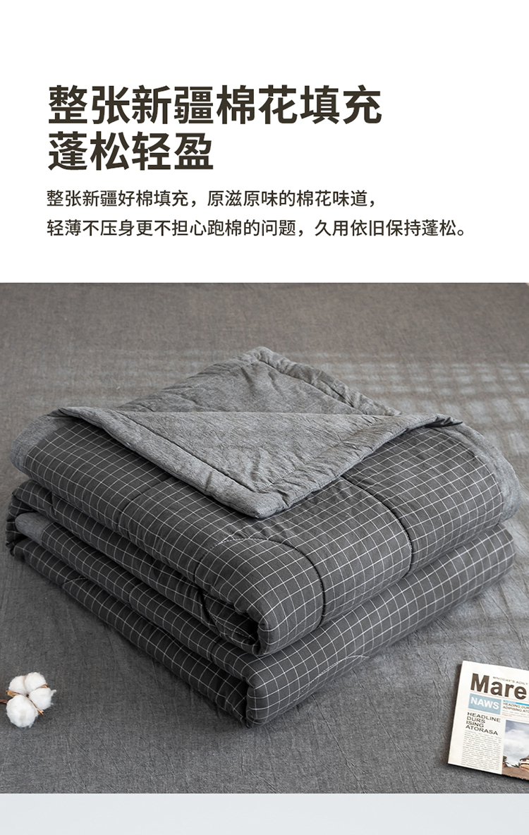 鸣升新疆长绒棉全棉花色织水洗棉夏被四件套 新灰格
