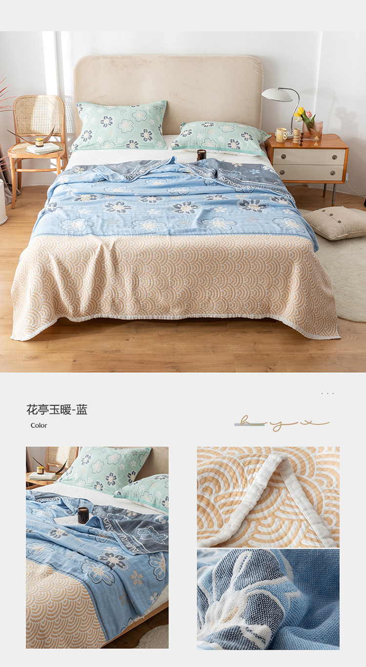 朴尔 2023年新款四层韩版碎花风全棉纱布毛巾被 花亭玉暖-蓝
