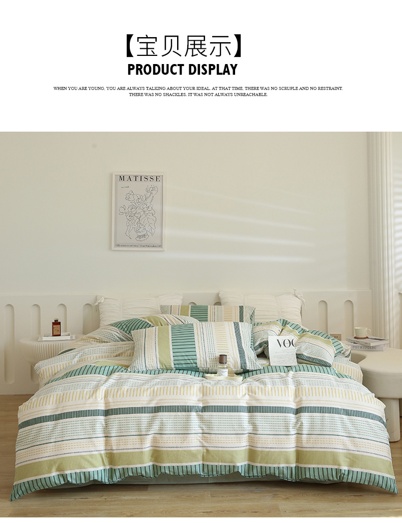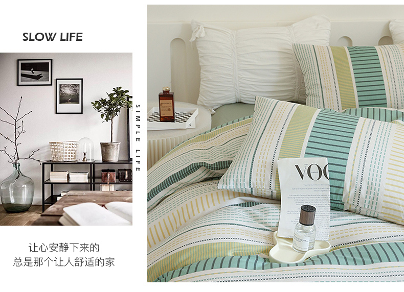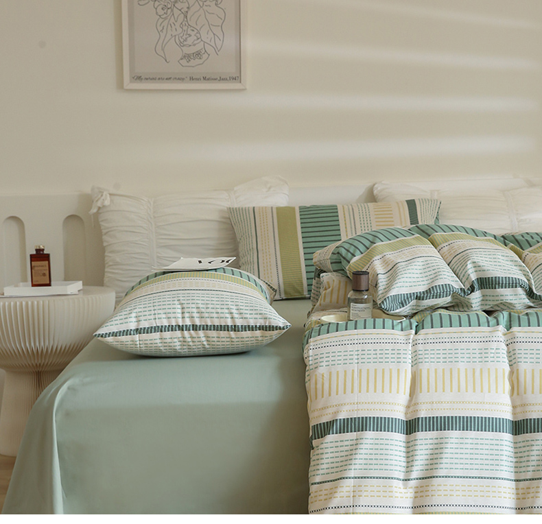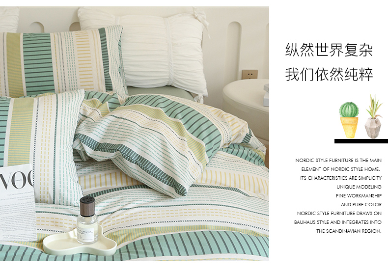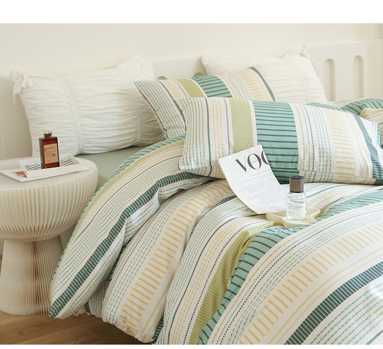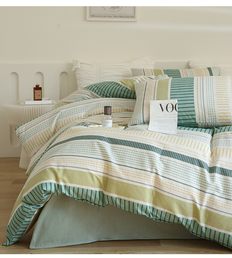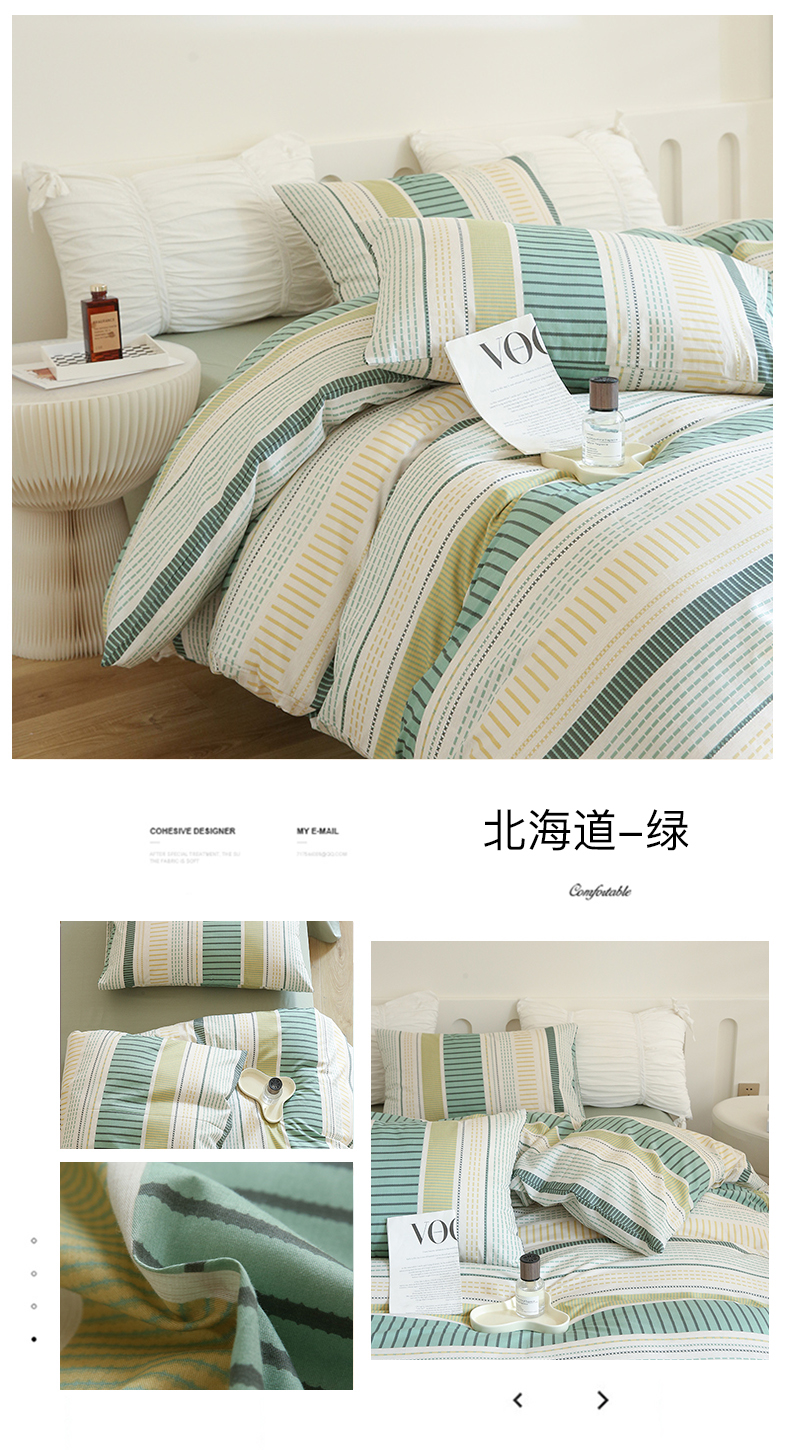 (总)2024秋冬新款A类简约日系全棉色织水洗棉纯棉四件套,粉密条,灰密条,绿密条,米密条,米雅,沐妍-粉,沐妍-黄,沐妍-灰,沐妍-绿,日落-粉,日落-灰,日落绿,中古绿条