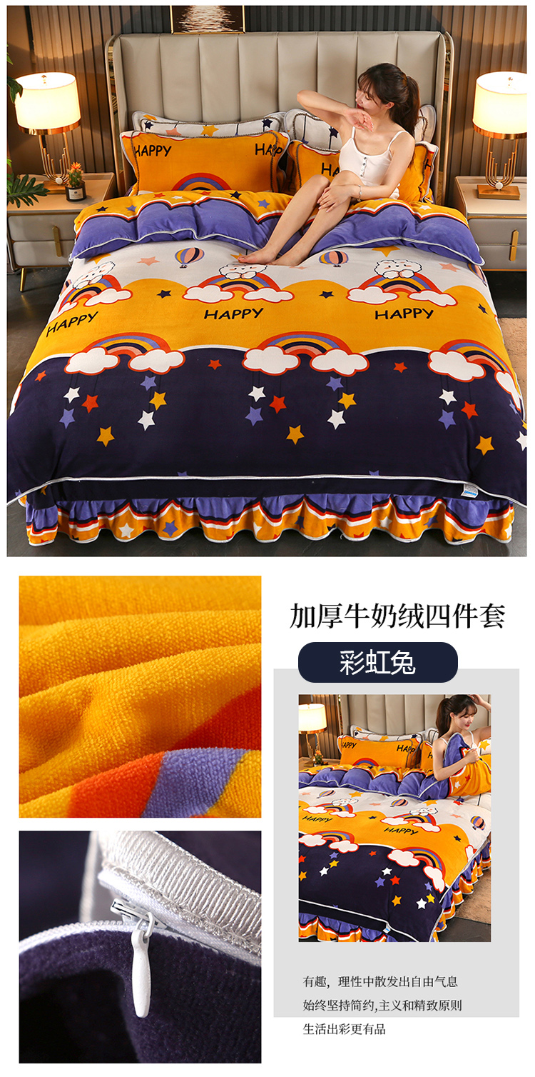 商品名称:爱上家居 2023新款加厚牛奶金貂绒四件套 彩虹兔