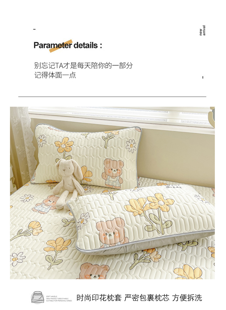 商品名称:柒月2023小清新乳胶凉席 小黄花熊