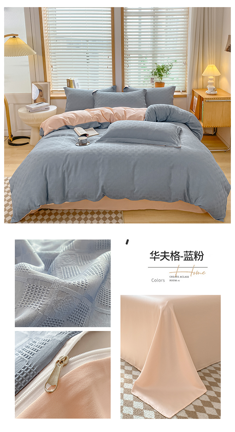 当前位置: 91家纺网 > 商品网购 > 床品套件 > 四件套 > 化纤活性四件套 > 骏腾家纺 2023新款华夫格冰丝四件套 华夫格-蓝粉