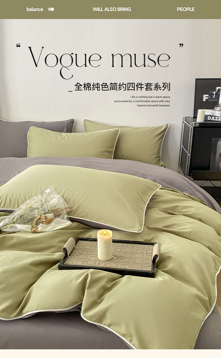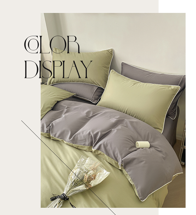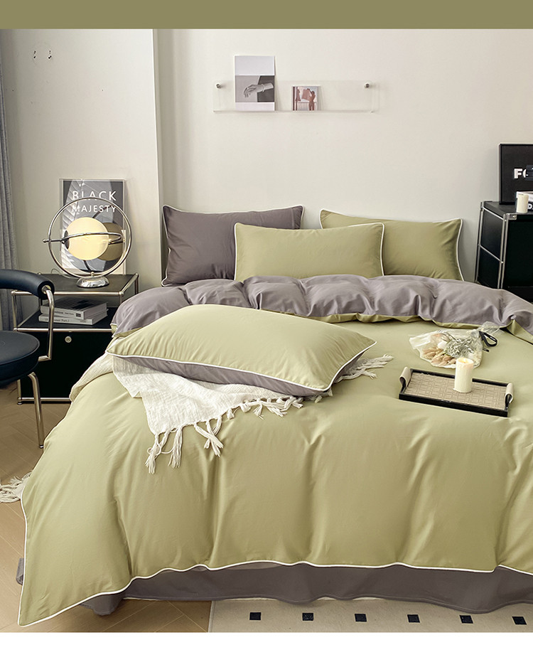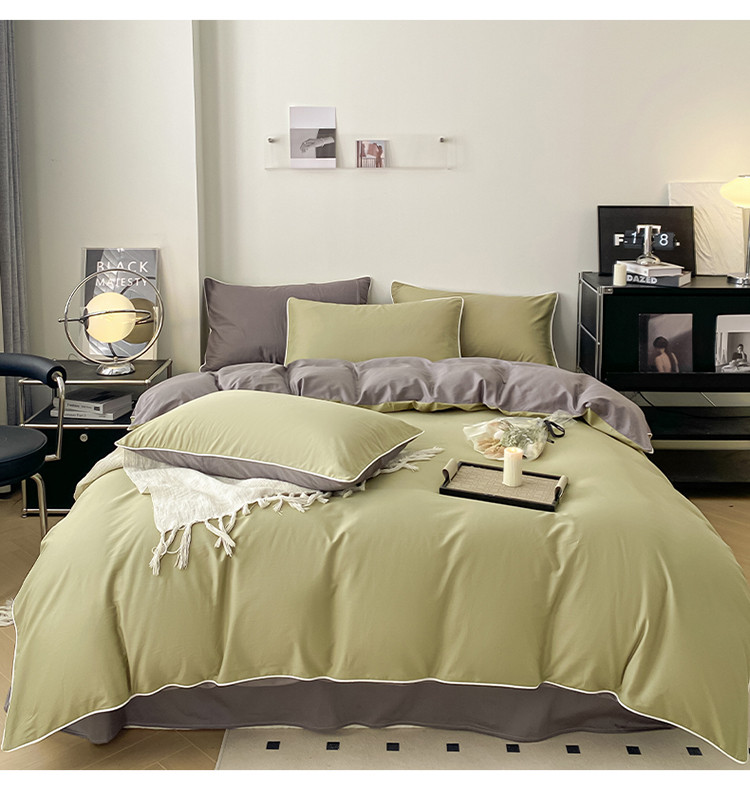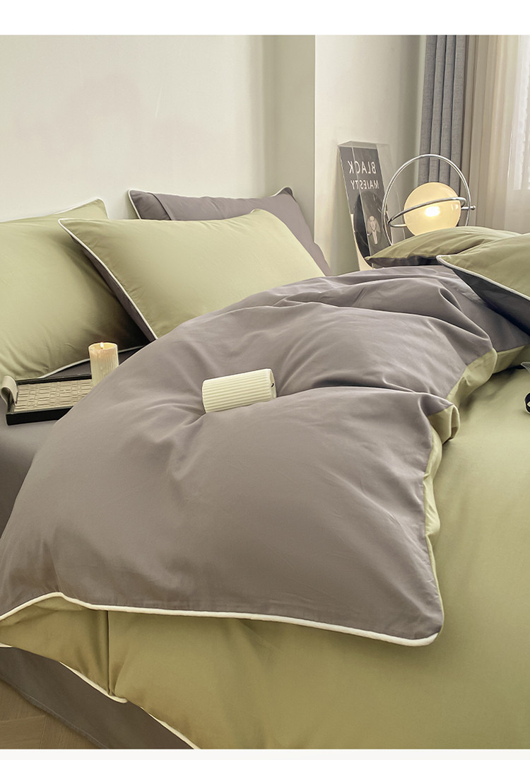 商品名称:万盛家纺 2025新款全棉纯棉纯色拼色简约四件套 绿-紫灰