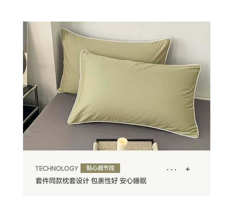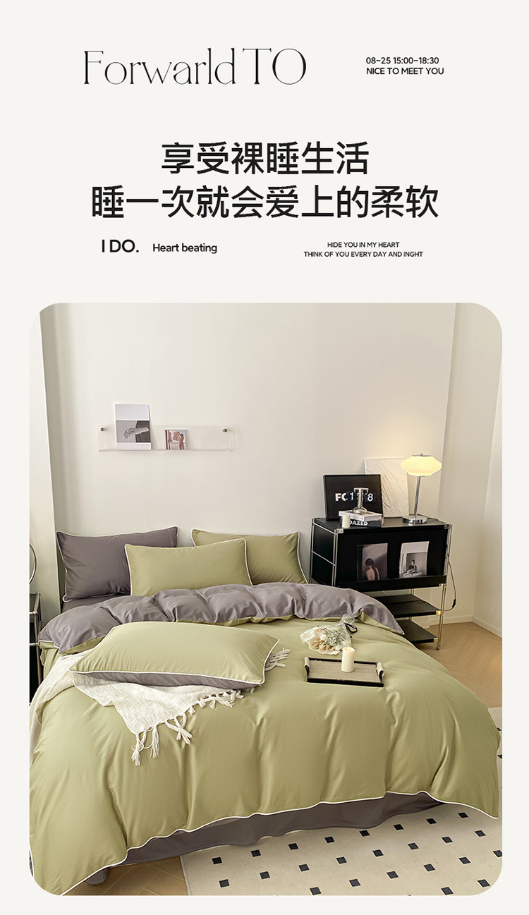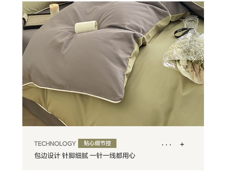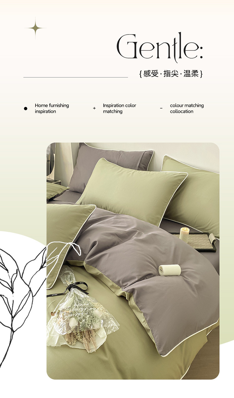 商品名称:万盛家纺 2025新款全棉纯棉纯色拼色简约四件套 绿-紫灰