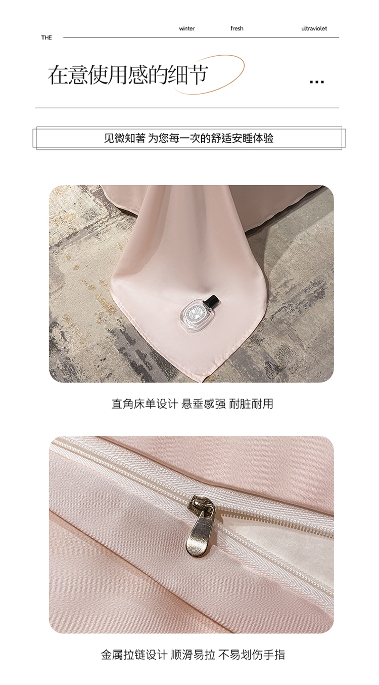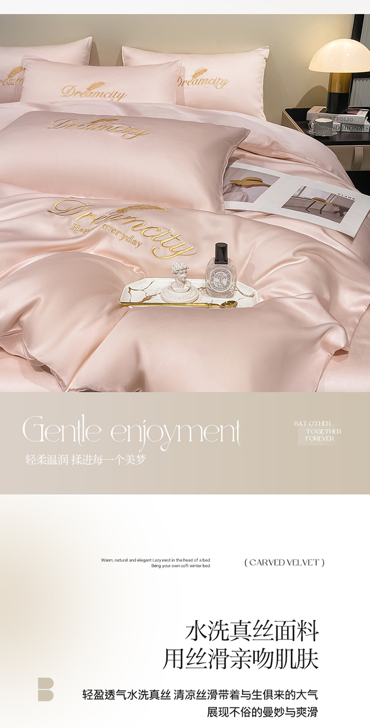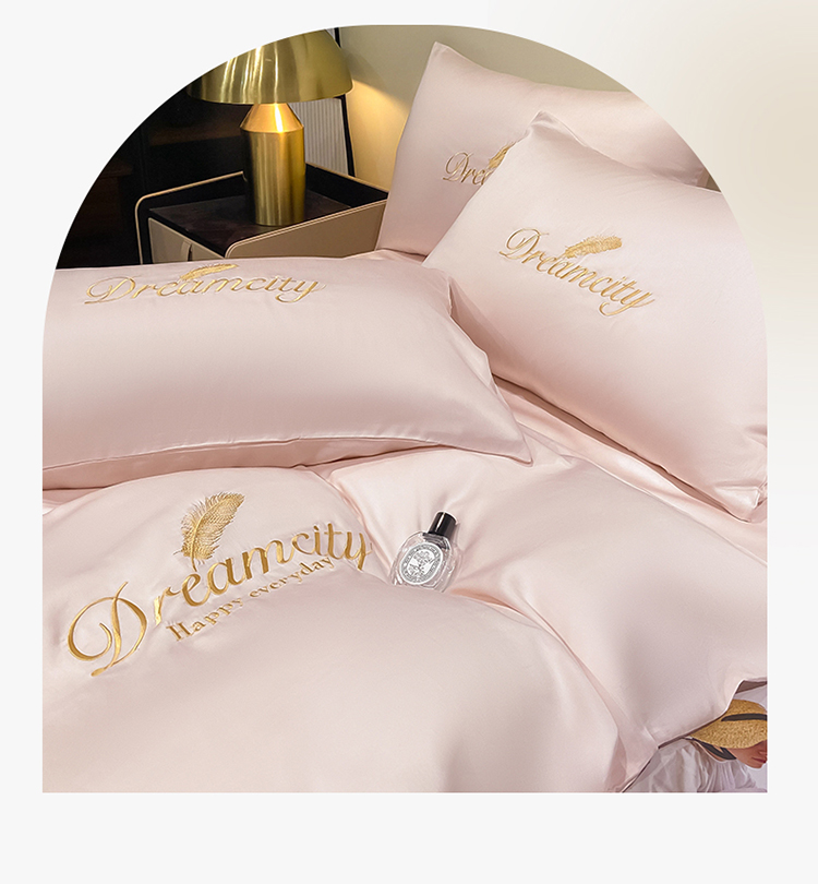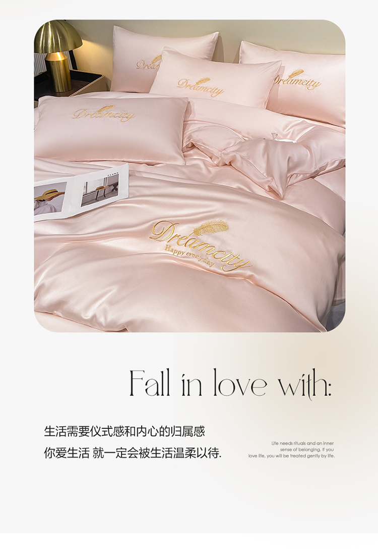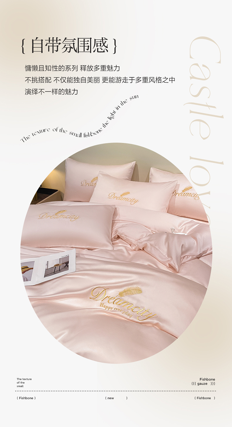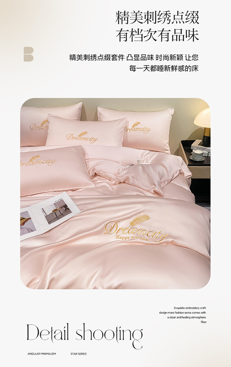 商品名称:花愿 2025新款水洗真丝刺绣四件套-羽梦系列 樱花粉