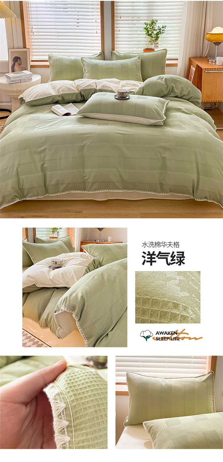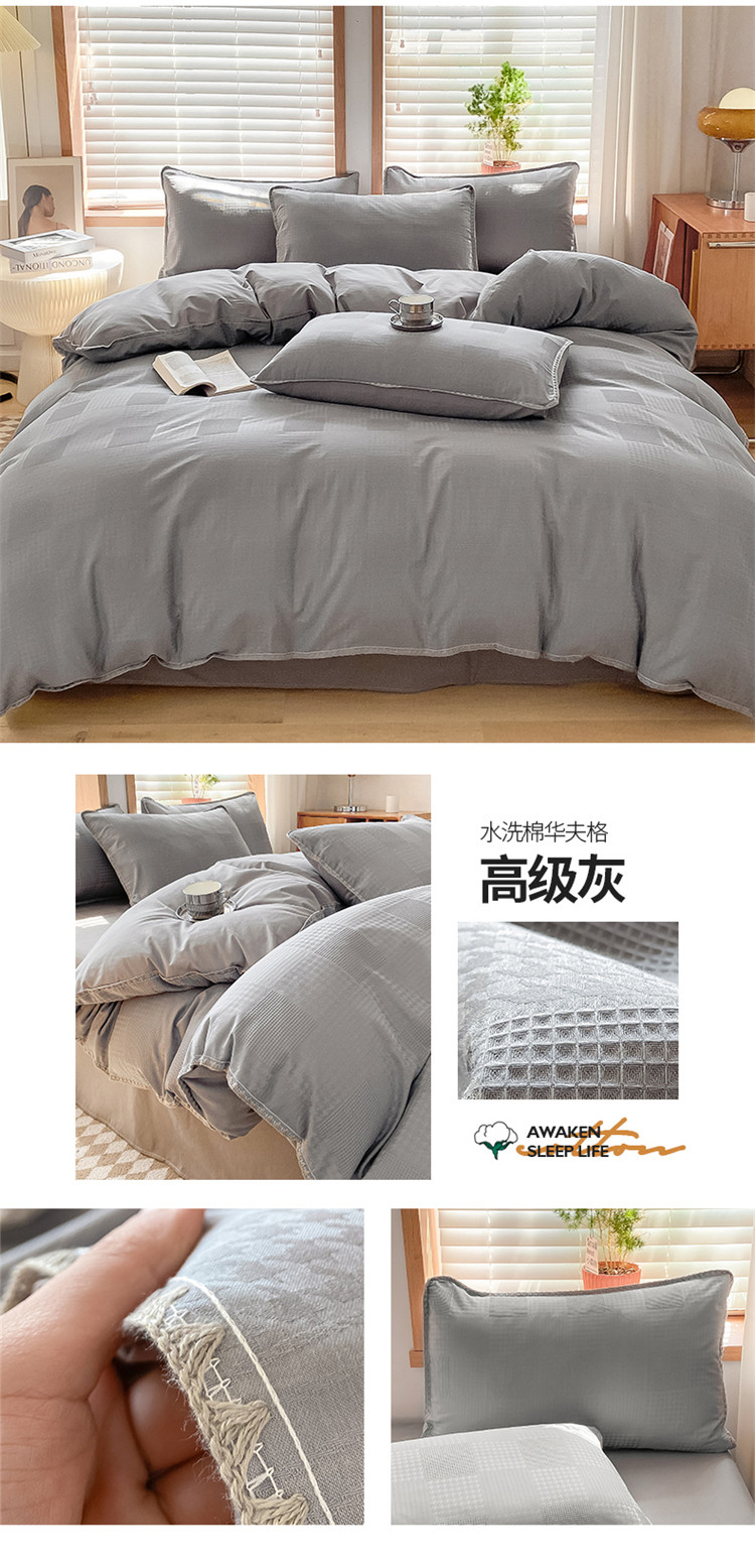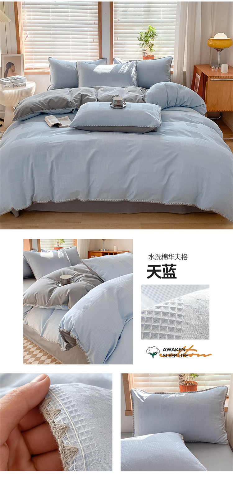商品名称:(总)2023新款A类60S水洗棉提花华夫格三角针纯棉系列四件套