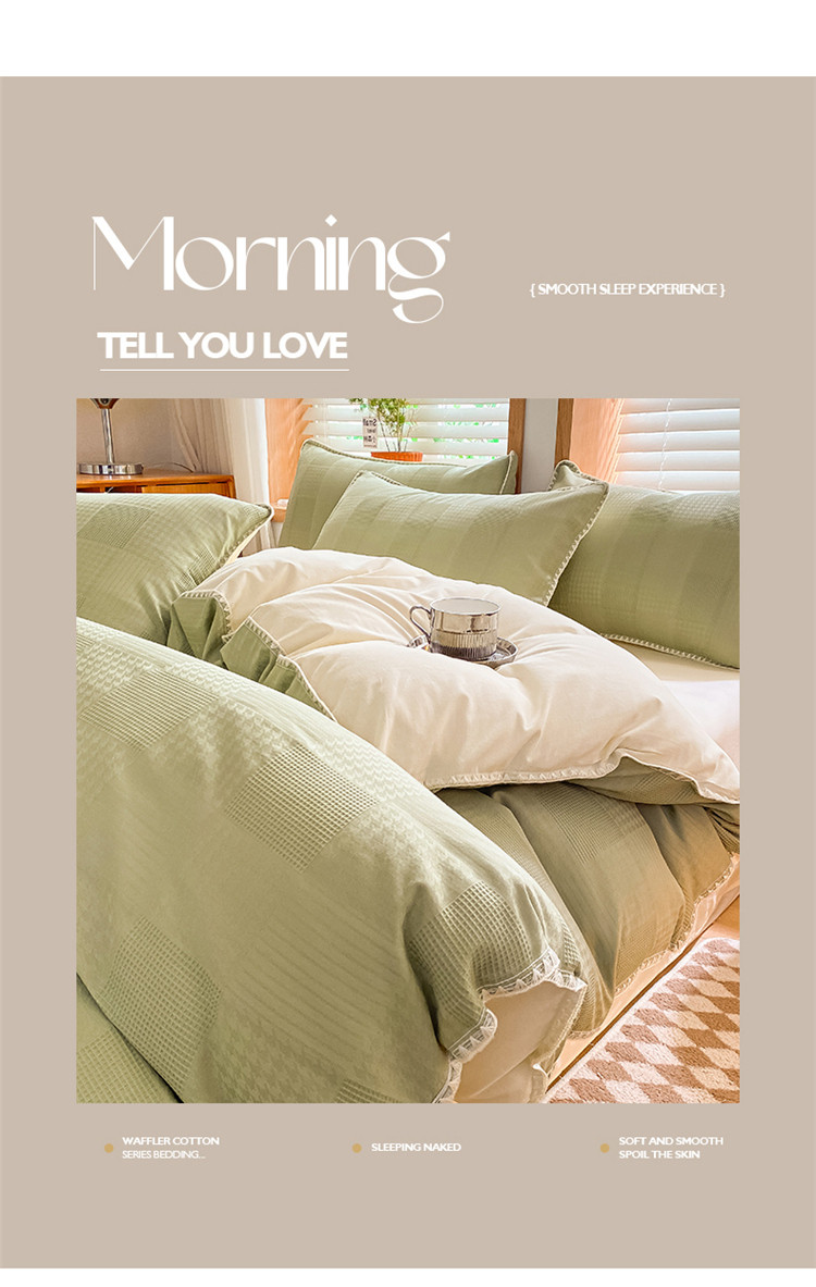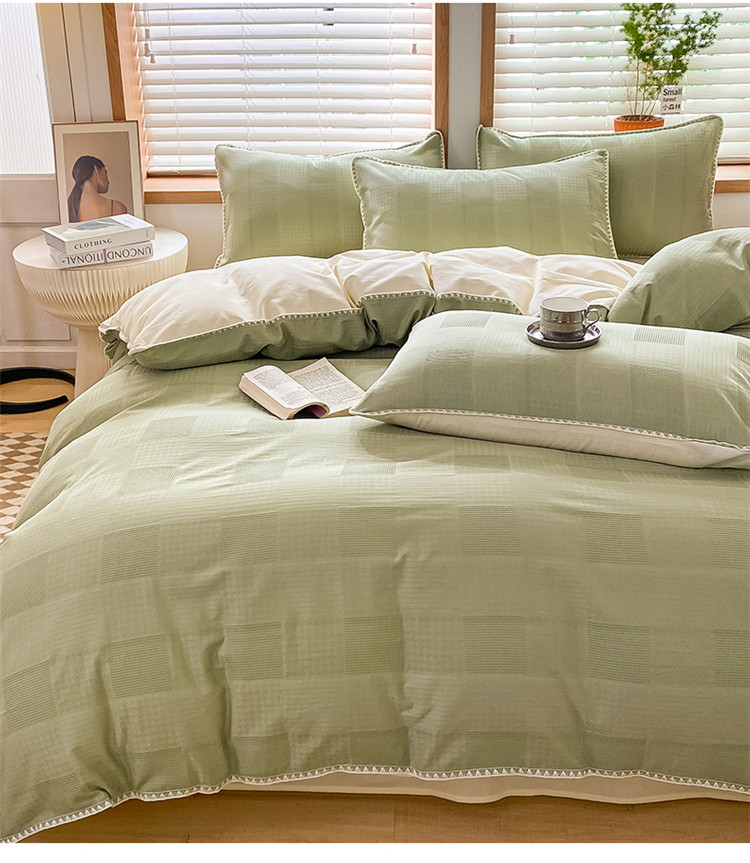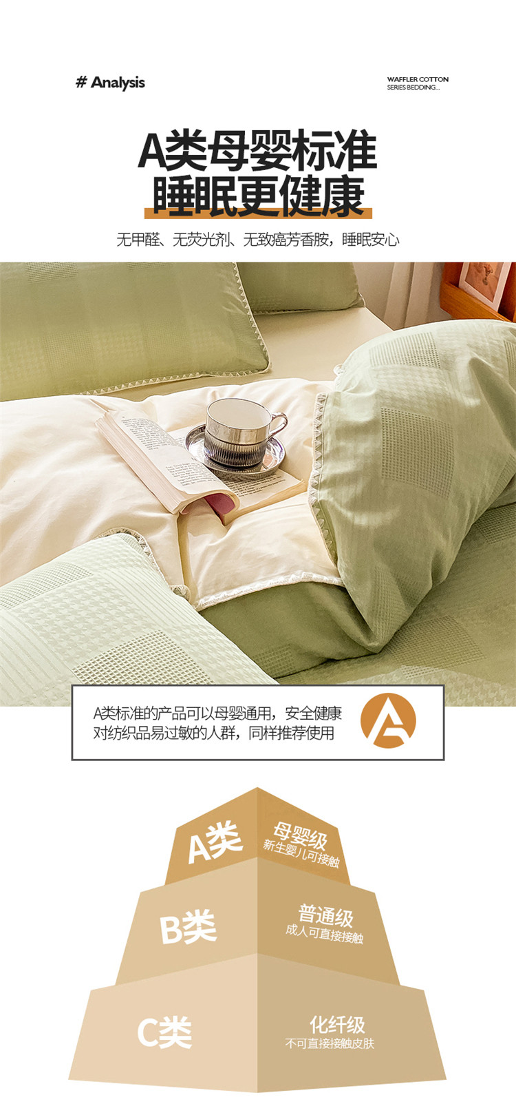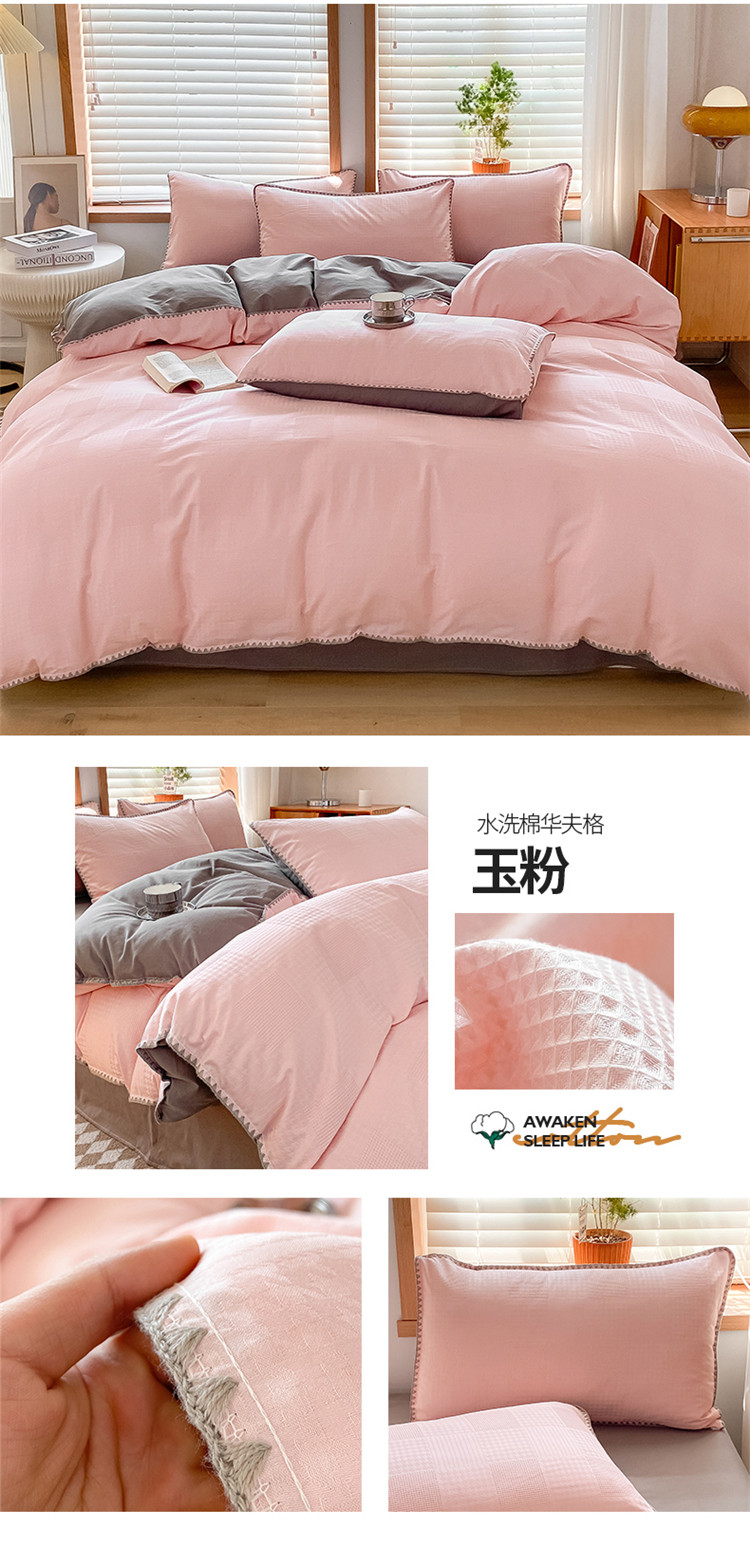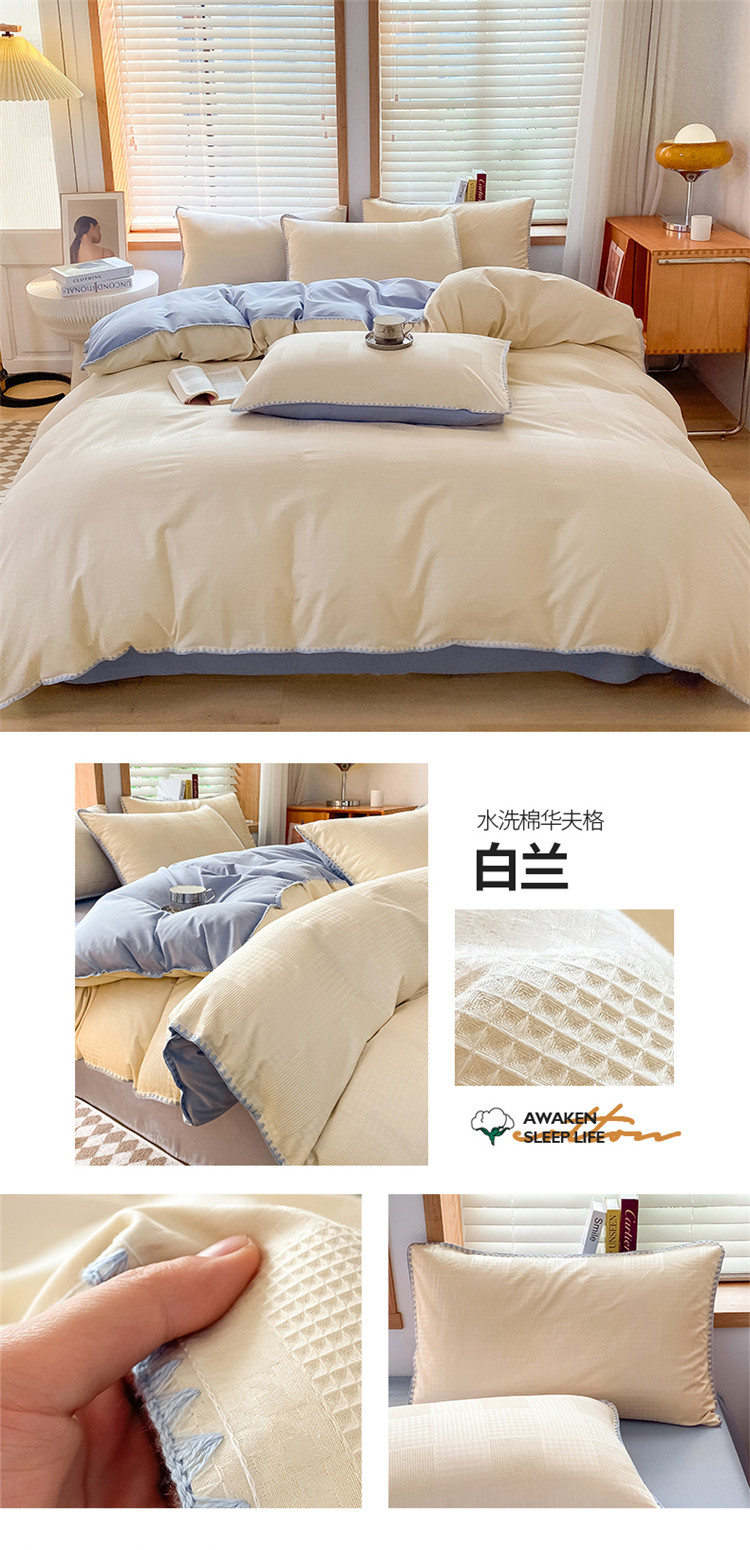 (总)2023新款A类60S水洗棉提花华夫格三角针纯棉系列四件套