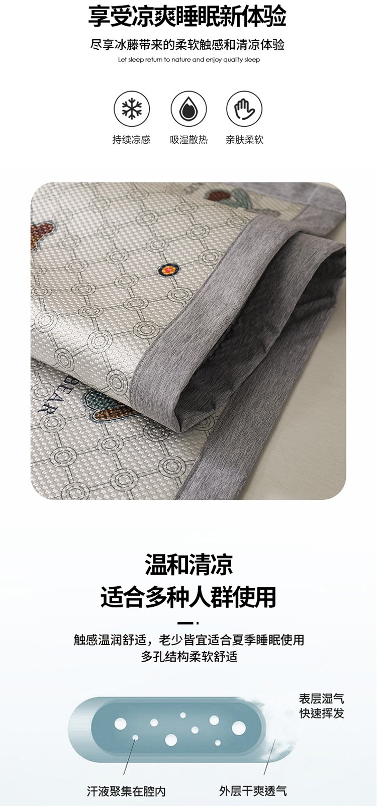 商品名称:爱上家居 2023新款冰藤席凉席冰丝席子 欢乐熊