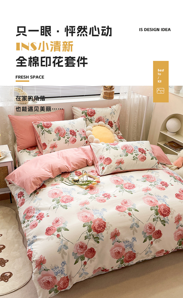 商品名称:绵庭 2023新款12868全棉ins小清新印花四件套 锦上添花