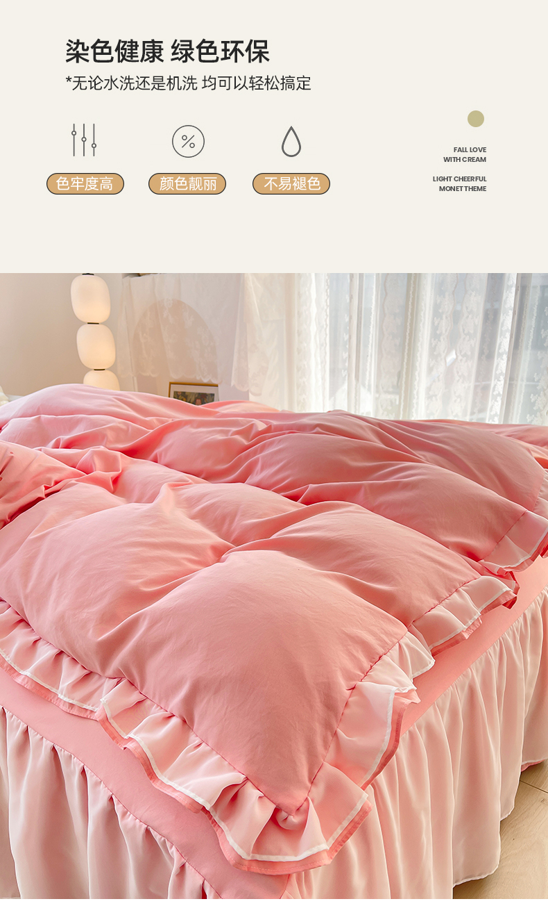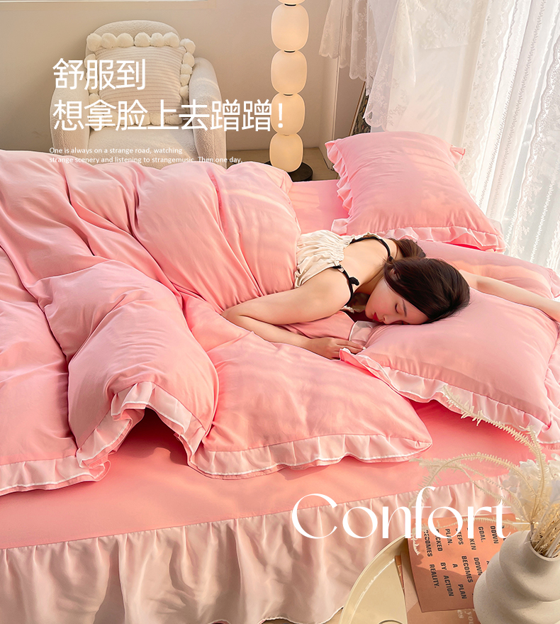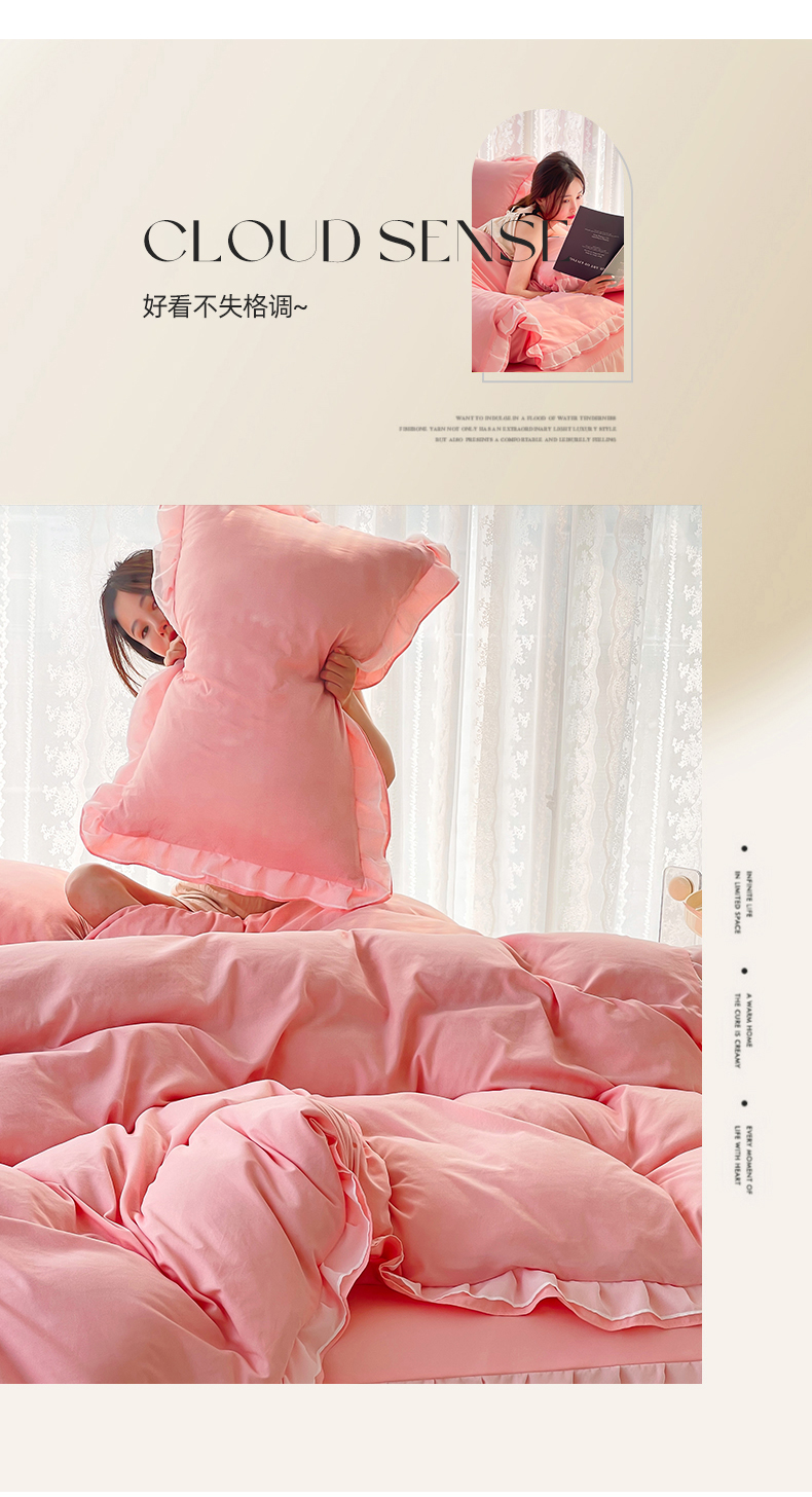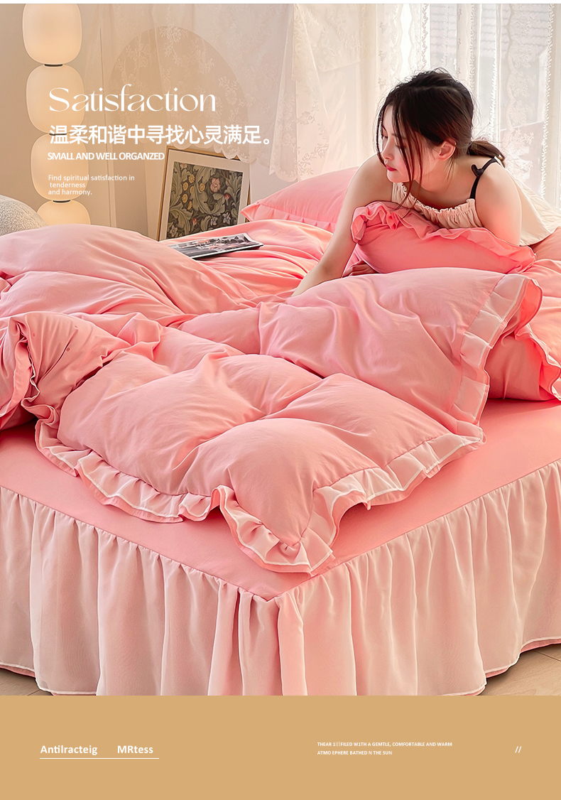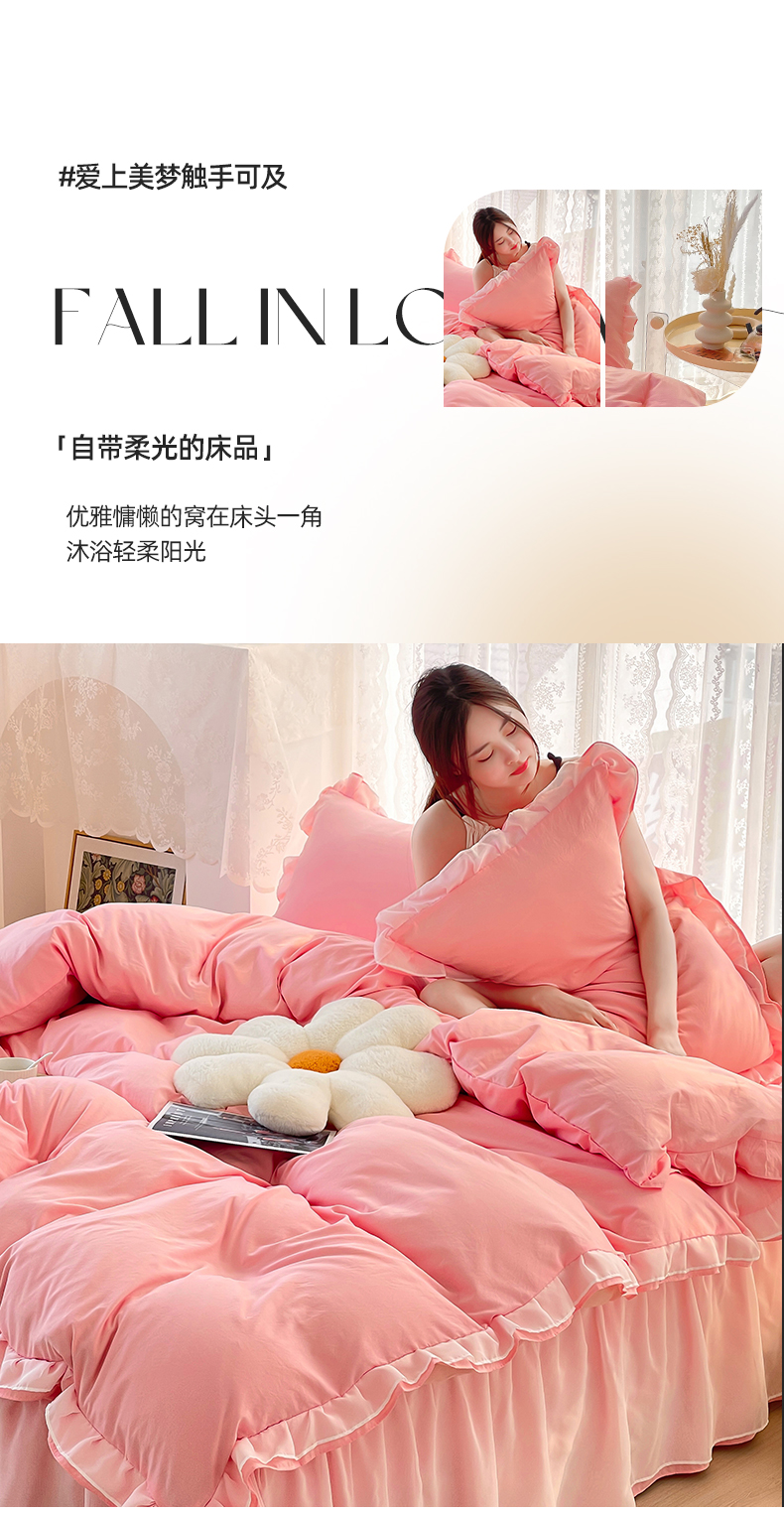 当前位置: 91家纺网 > 商品网购 > 床品套件 > 四件套 > 水洗棉四件套 > 简爱 2025新款水洗棉雪纺双层花边四件套 告白玉