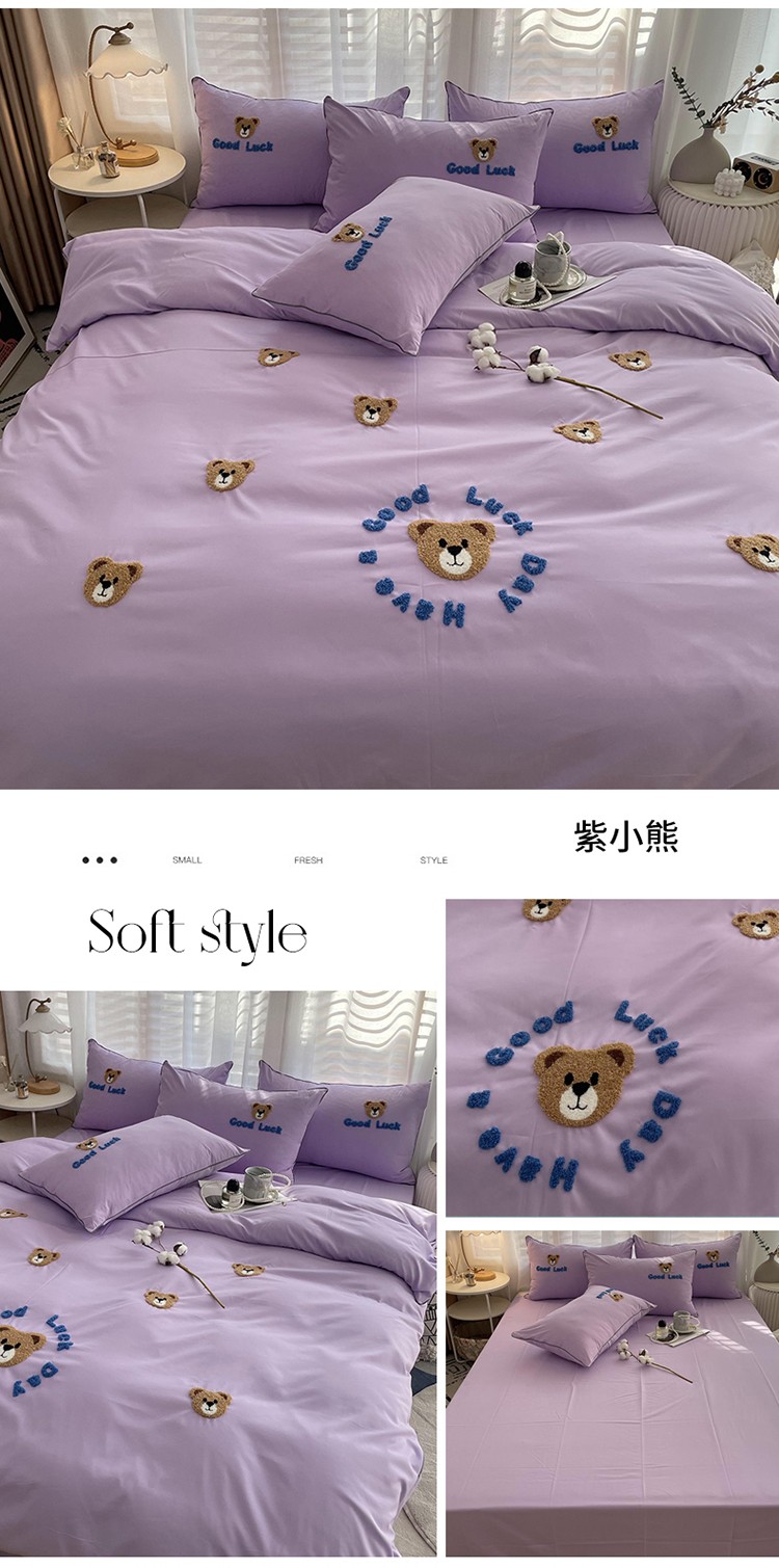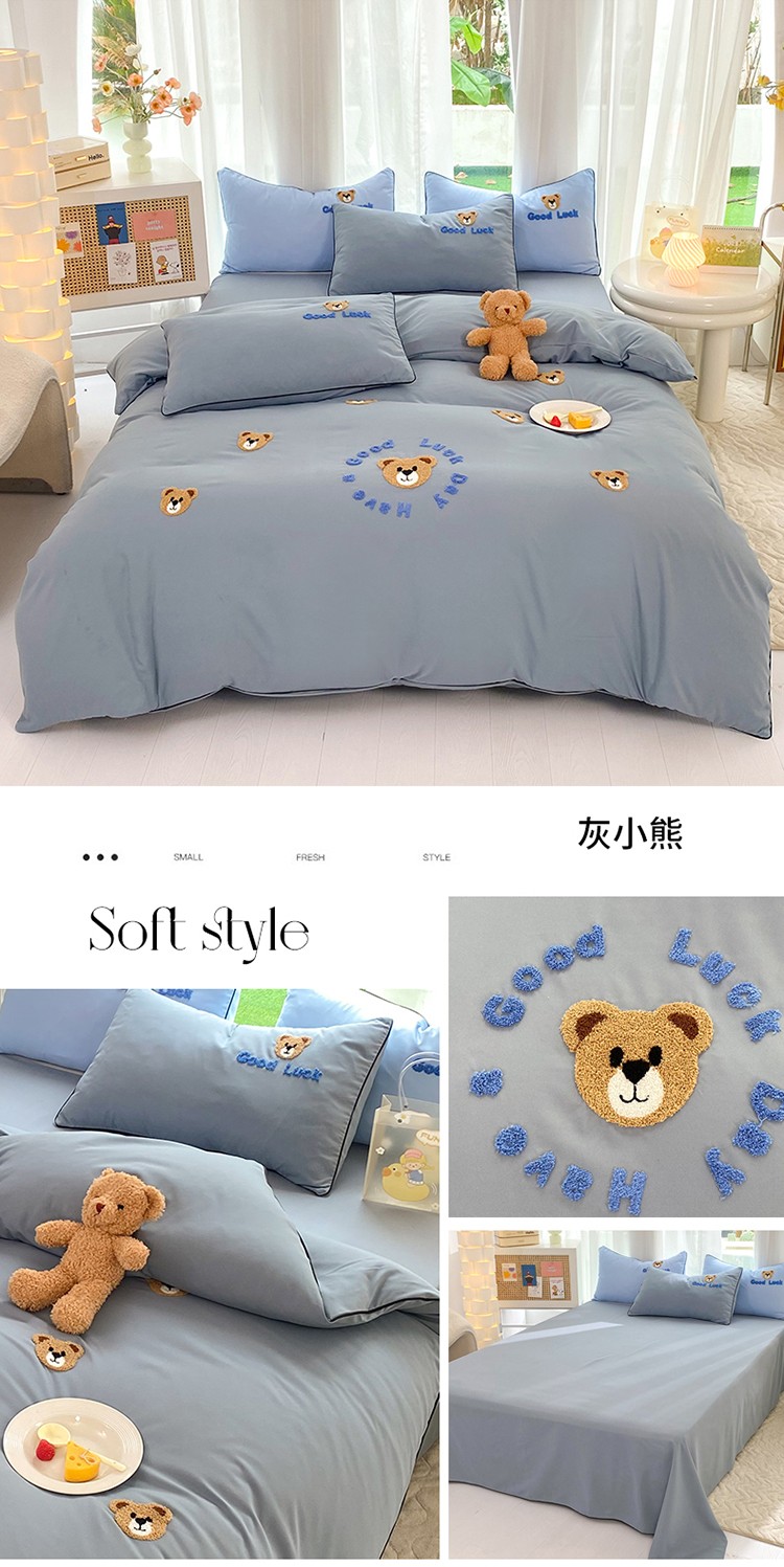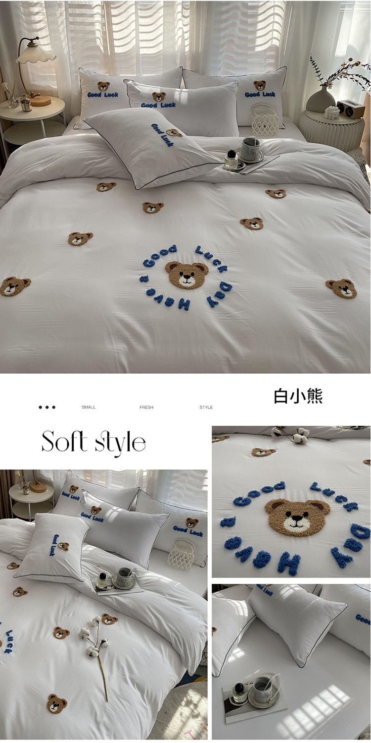 (总)小主驾到 2023新款小熊毛巾绣水洗棉四件套,白小熊,灰小熊,蓝小熊,裸粉小熊,绿小熊,紫小熊