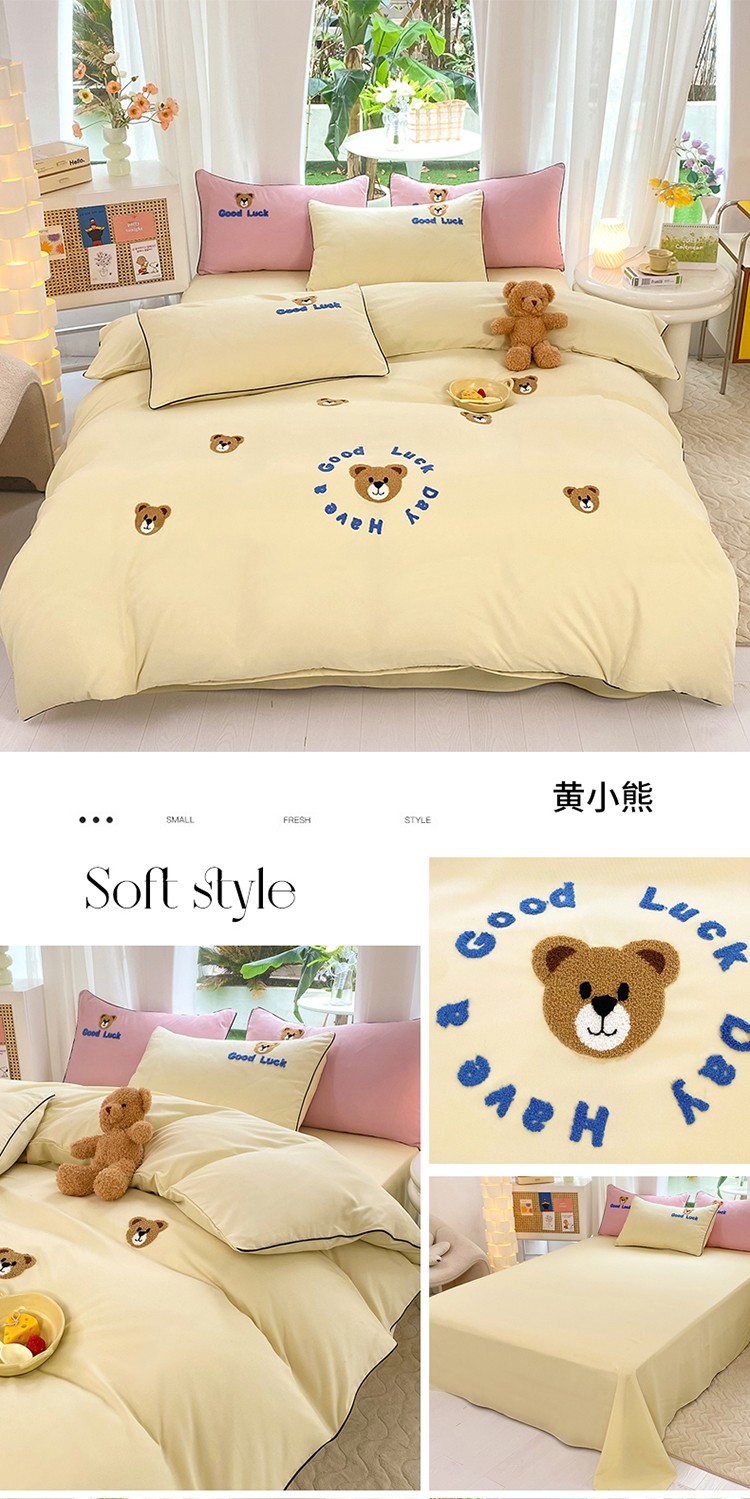 (总)小主驾到 2023新款小熊毛巾绣水洗棉四件套,粉小熊,黄小熊,灰小熊,蓝小熊,绿小熊