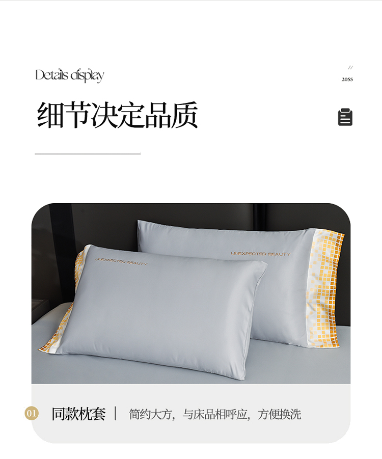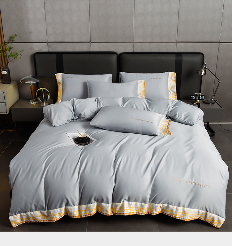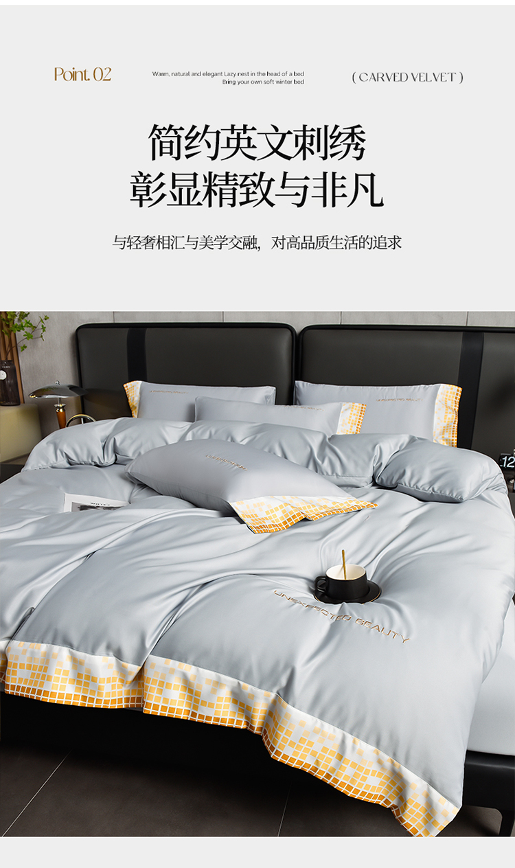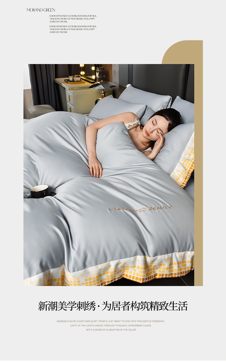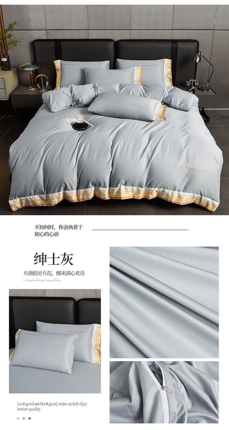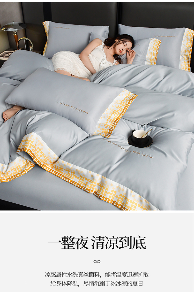 商品名称:米奈 2024新款A类水洗真丝四件套-星光 绅士灰