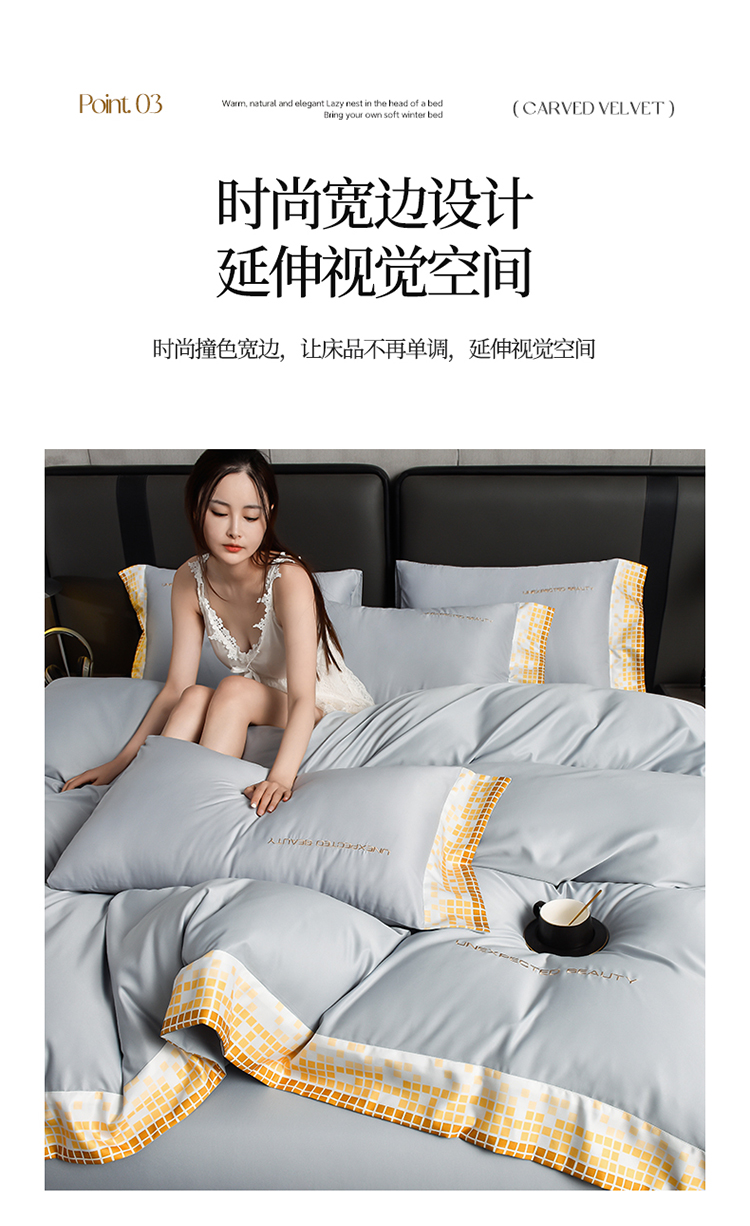 (总)米奈家居 2025新款贴边拼角100支新疆长绒棉四件套-诺拉,冰川蓝,豆蔻紫,落霞粉,奶杏棕,山茶红,松雾灰