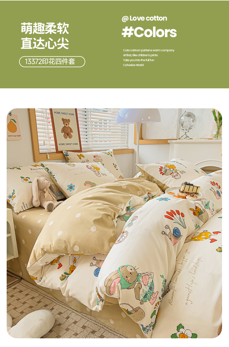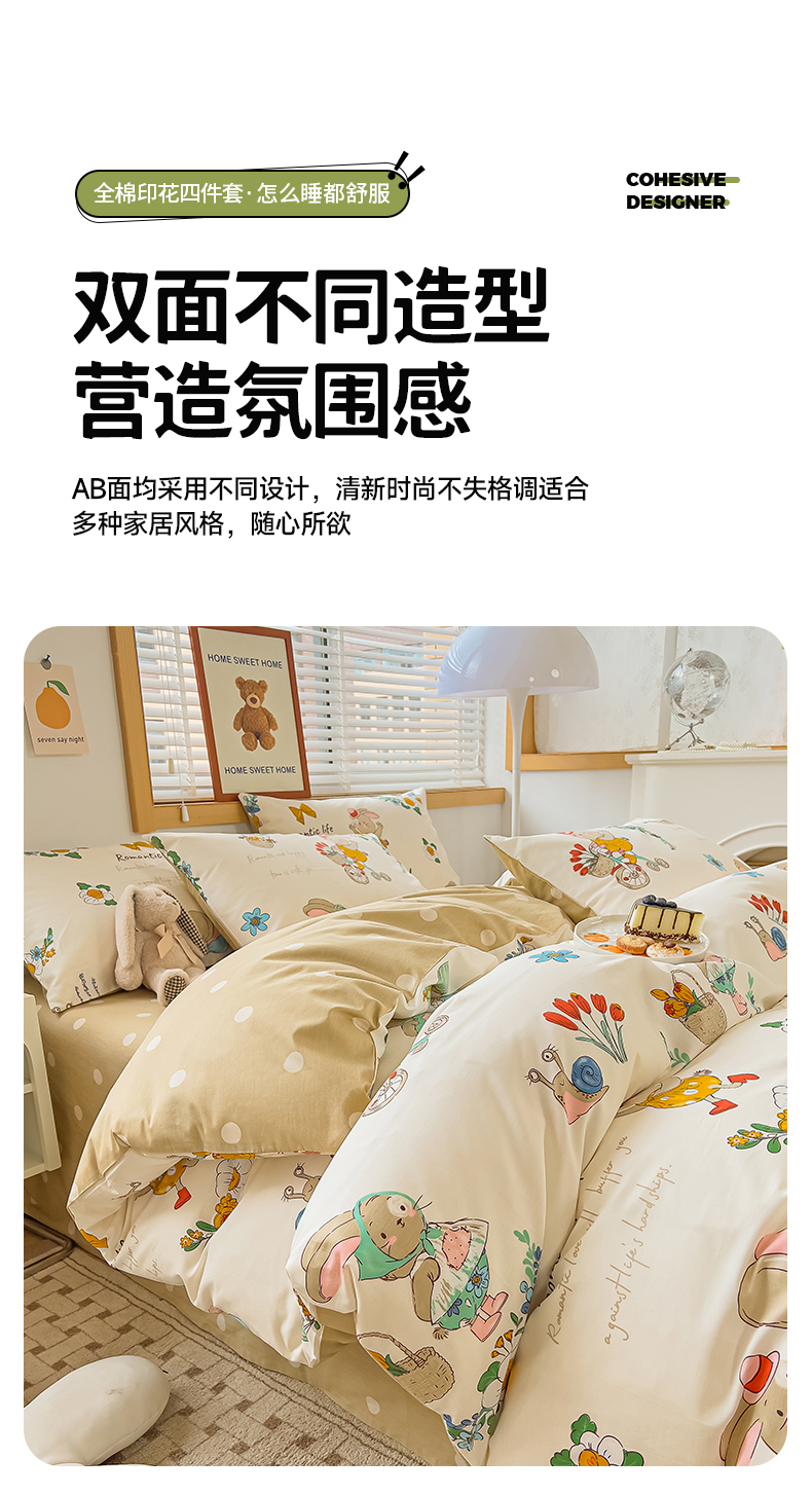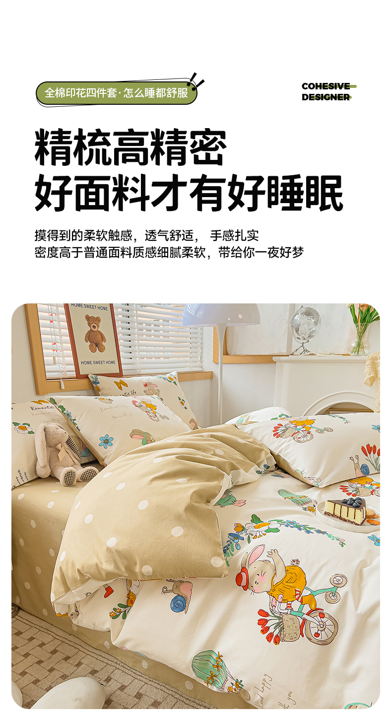寐眠 2023新款13372全棉印花四件套 单车小兔