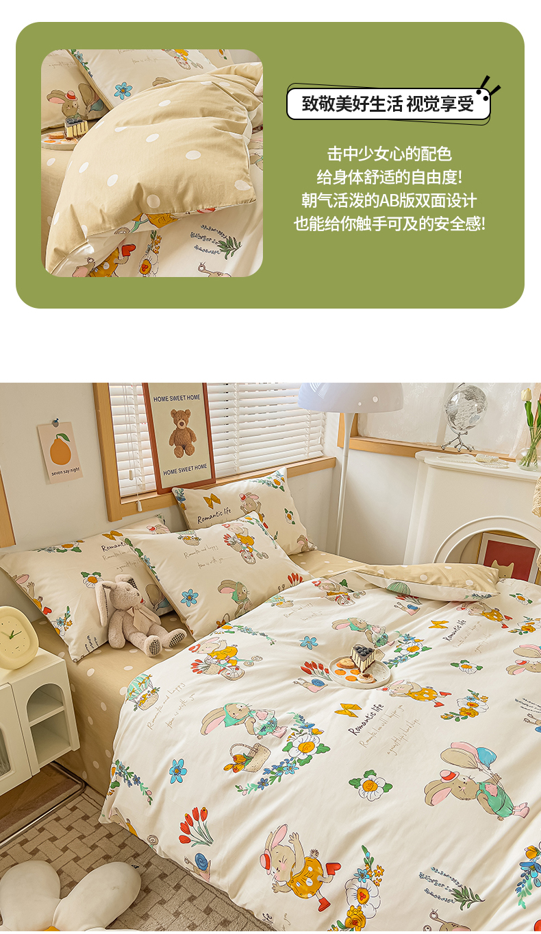 商品名称:寐眠 2023新款13372全棉印花四件套 单车小兔