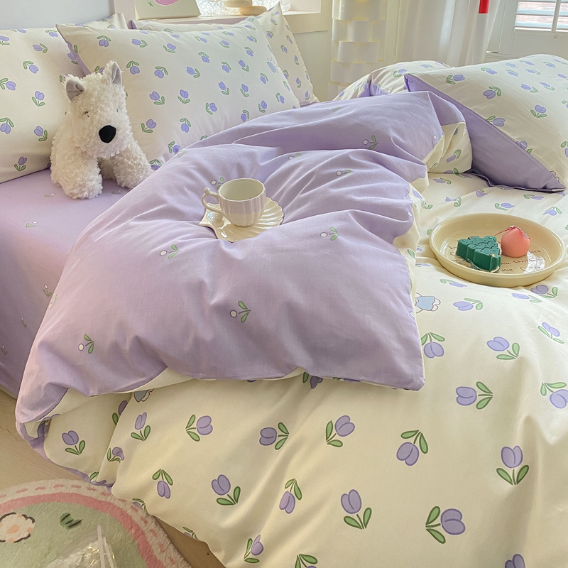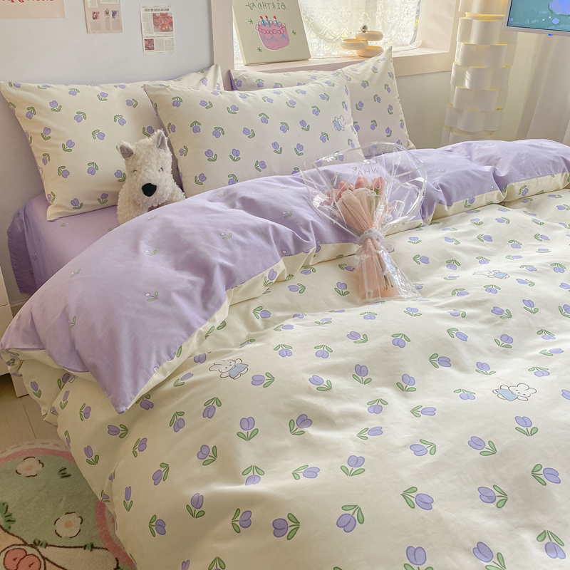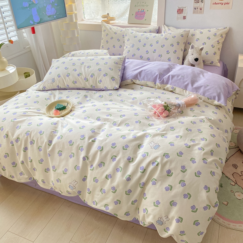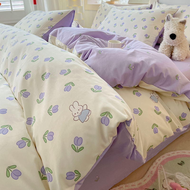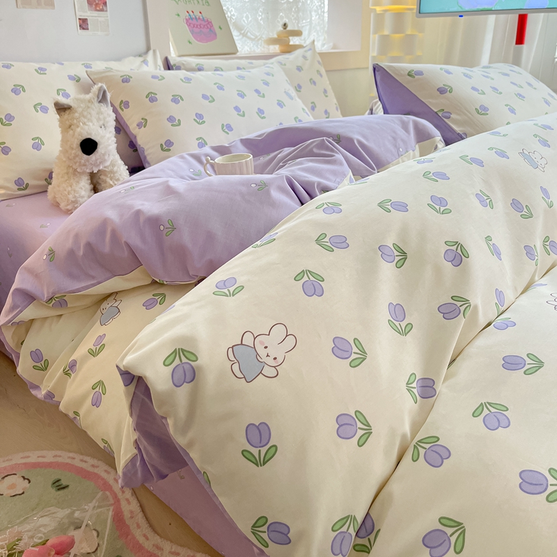 商品名称:寐眠 2023新款13372全棉印花四件套 郁金香小兔