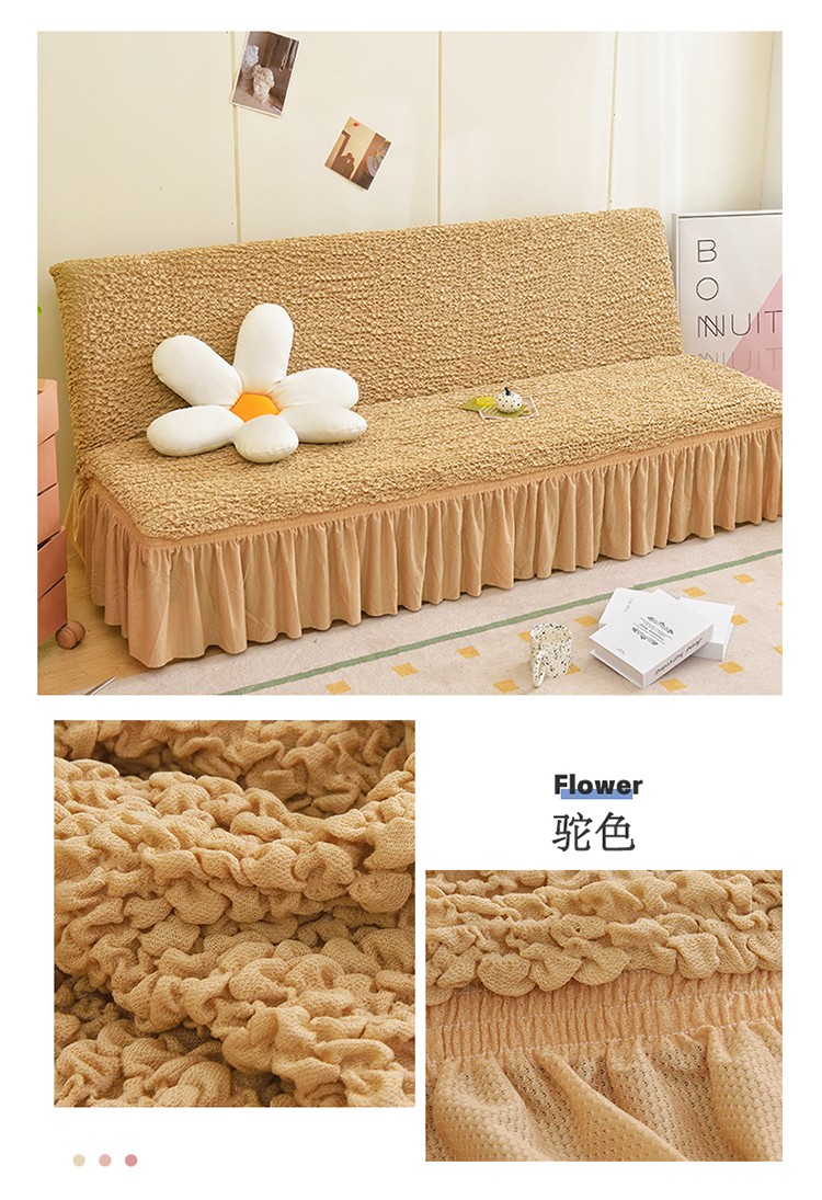 商品名称:启博家纺 2023新款高端日式皱皱布奶油云纱裙边沙发床套 驼色
