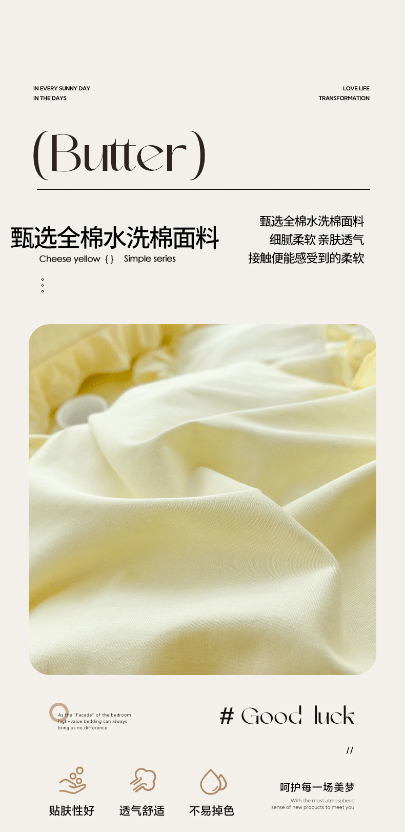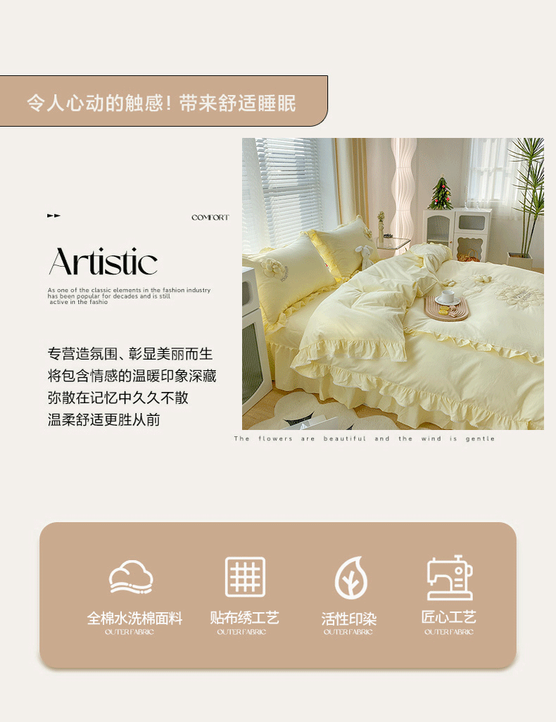 商品名称:乐嘉盈2025新款全棉水洗棉立体提花贴布绣四件套 象牙黄