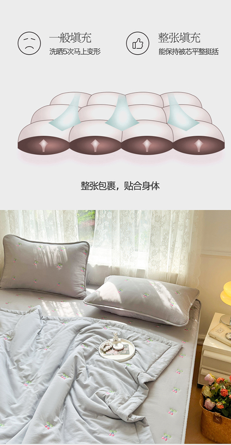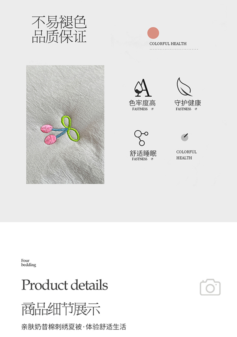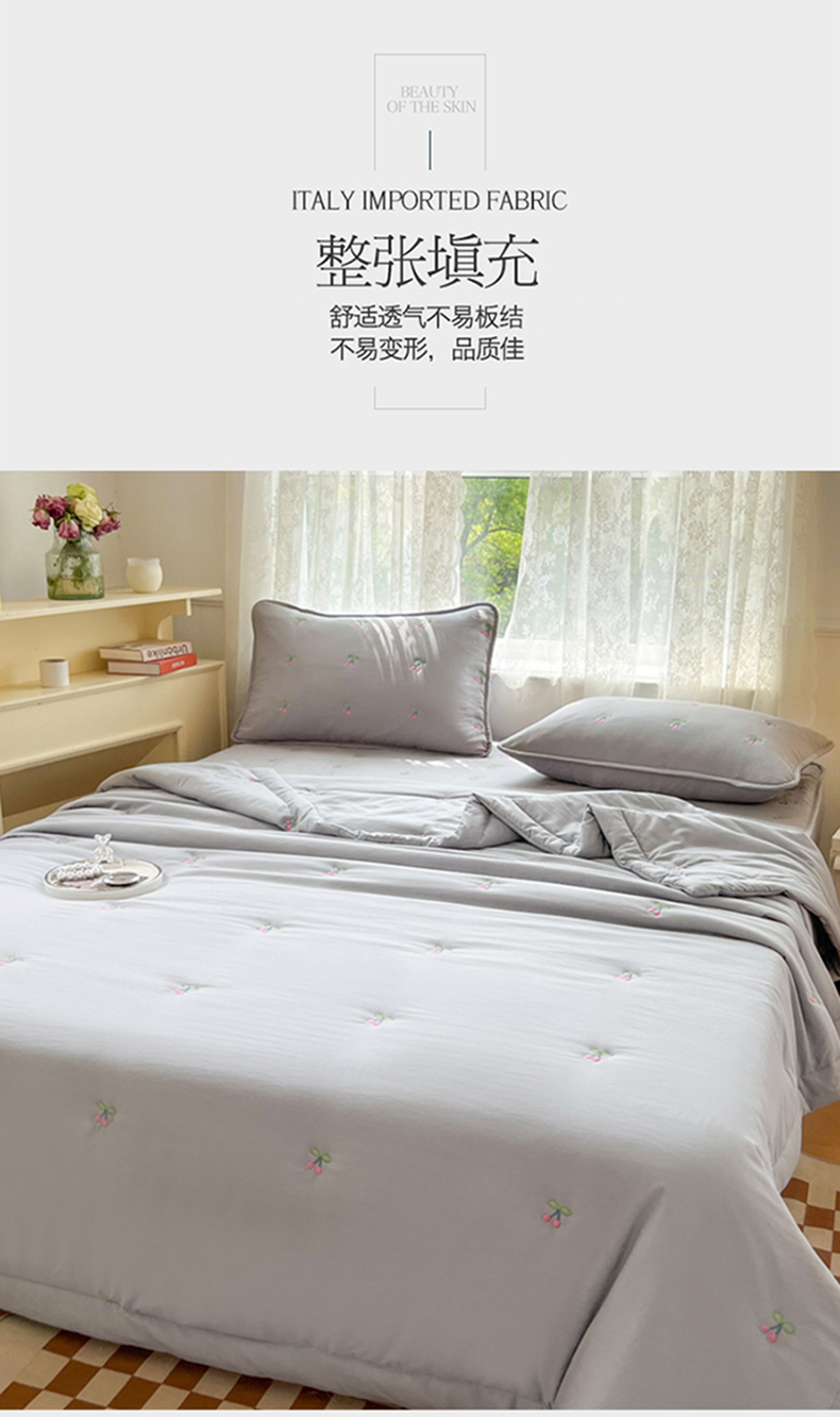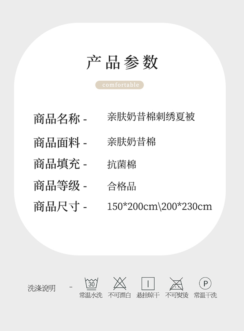 商品名称:尊康家纺(原磊科) 2024新款亲肤奶昔棉刺绣夏被 夏被-绅士灰