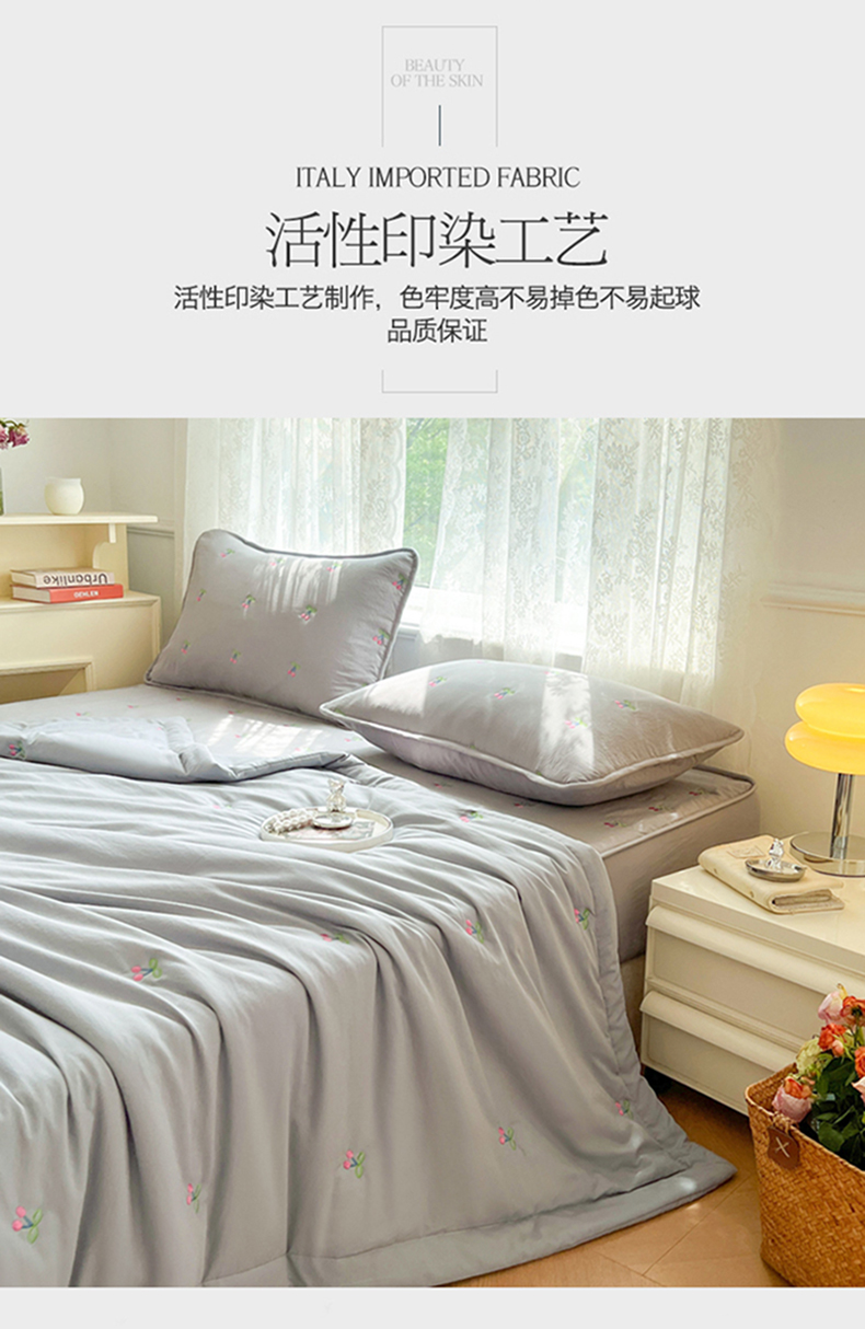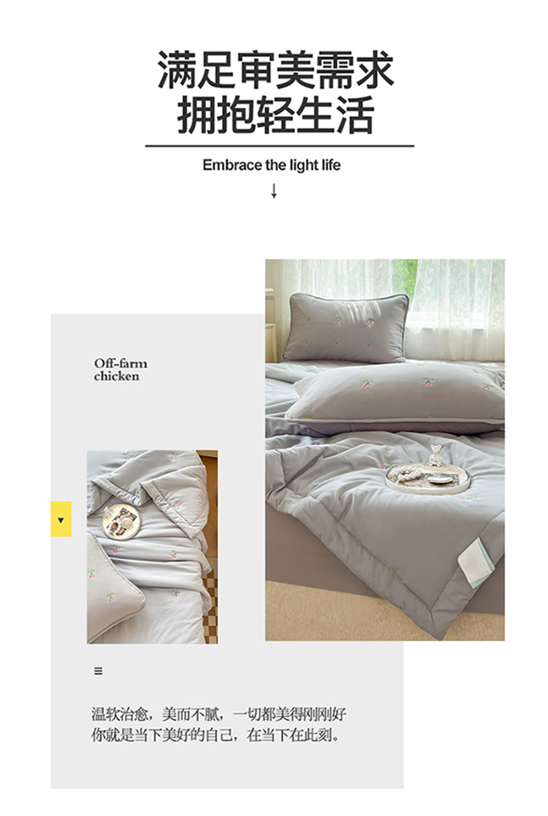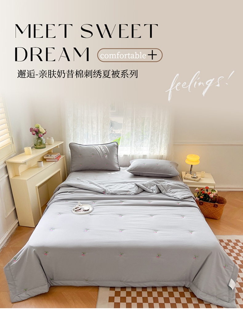 尊康家纺(原磊科) 2024新款亲肤奶昔棉刺绣夏被 夏被-绅士灰