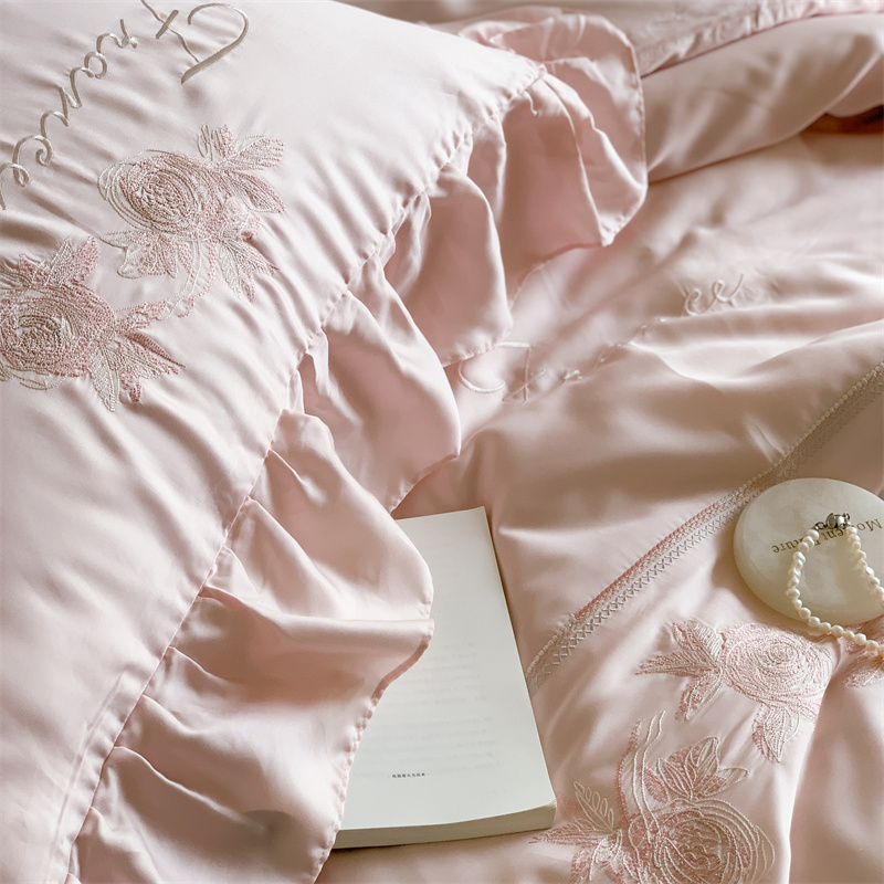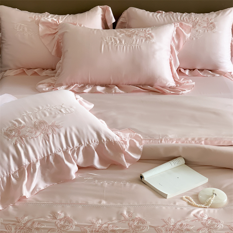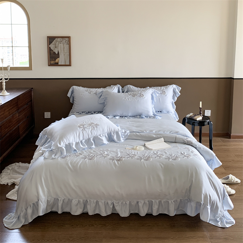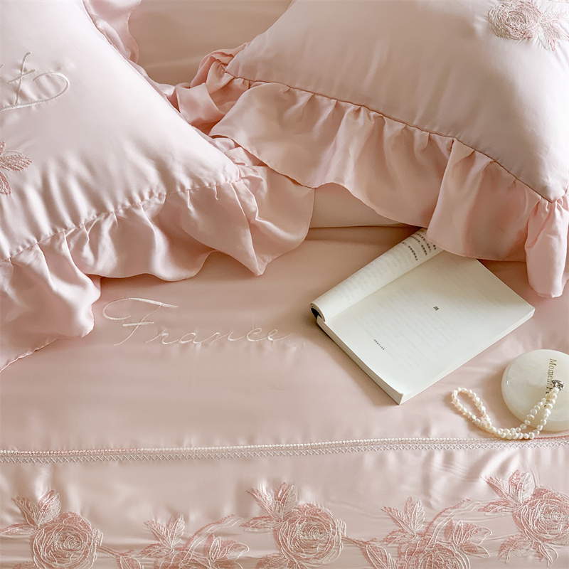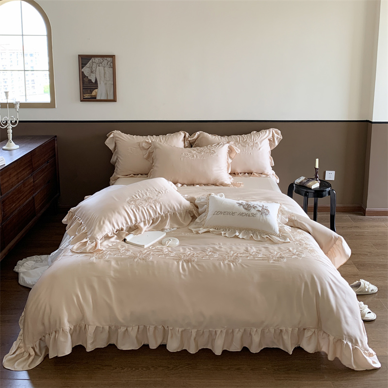 (总)若未 2023新款法式兰精天丝法式绣花四件套