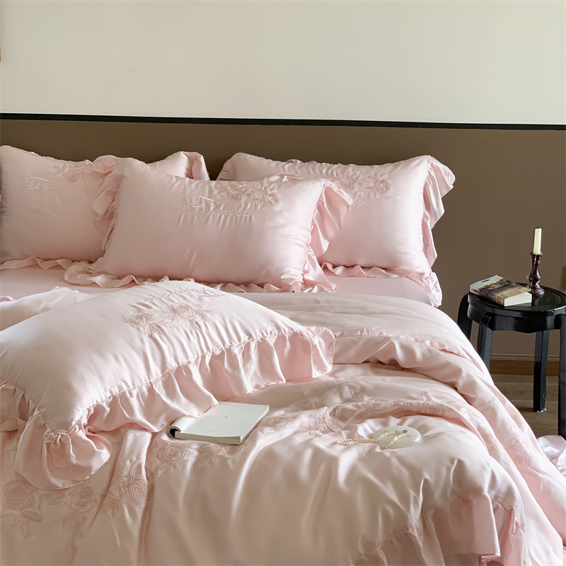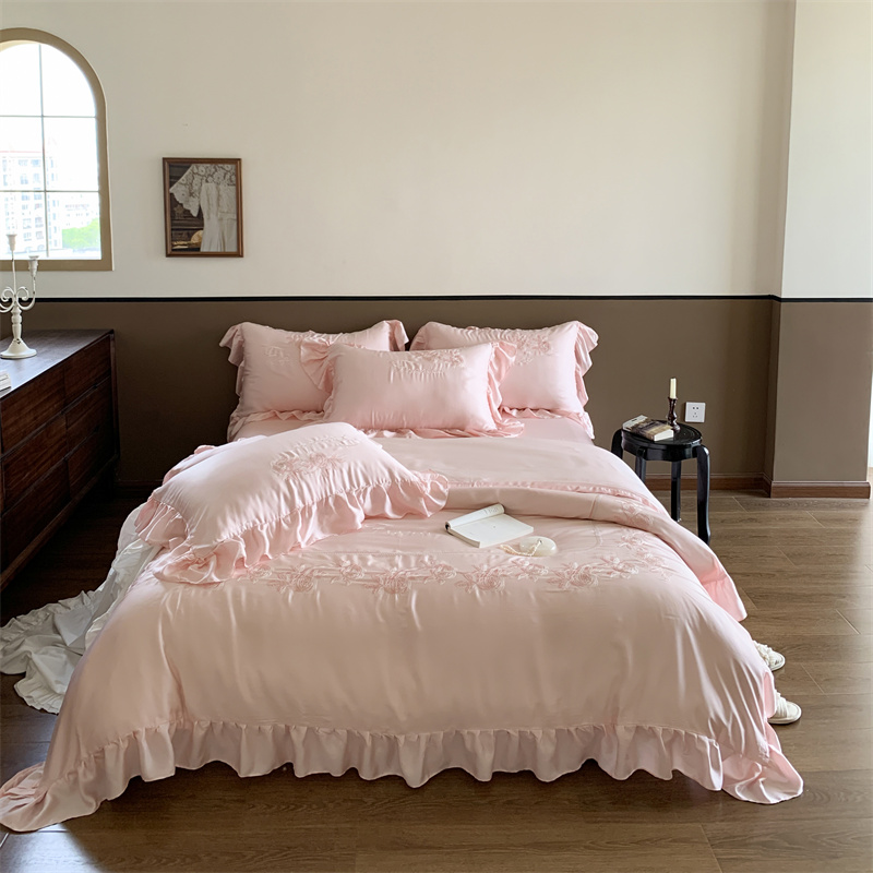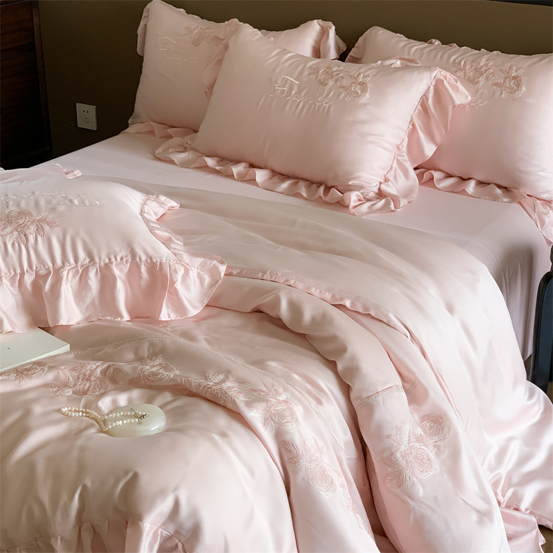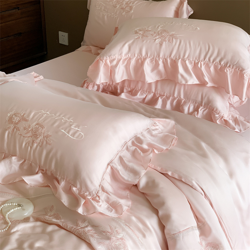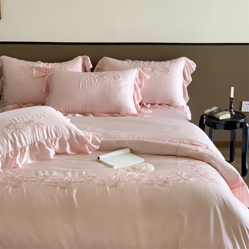 (总)若未 2023新款法式兰精天丝法式绣花四件套